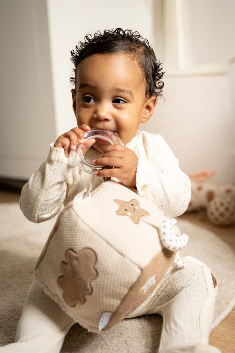 Dank seines weichen, sicheren und handlichen Designs ist der Würfel ideal für kleine Hände. Die neutrale Farben und das raffinierte Finish passen nahtlos zum beruhigenden Stil der Heaven Kollektion. Ein liebevolles und stilvolles Spielzeug, das sowohl zu Hause als auch unterwegs Spaß macht.