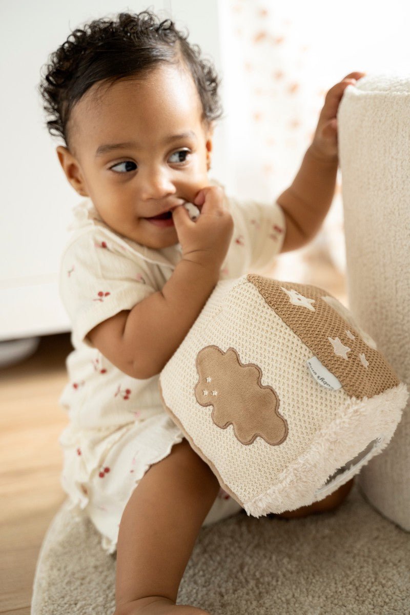Der Heaven Activity Cube von Baby's Only lädt dein Kleines zum Erforschen, Fühlen und Staunen ein. Jede Seite dieses weichen Würfels zeigt beruhigende Formen wie einen Mond, einen Stern und eine Wolke, die spielerisch die Neugierde und die Sinne deines Babys anregen.