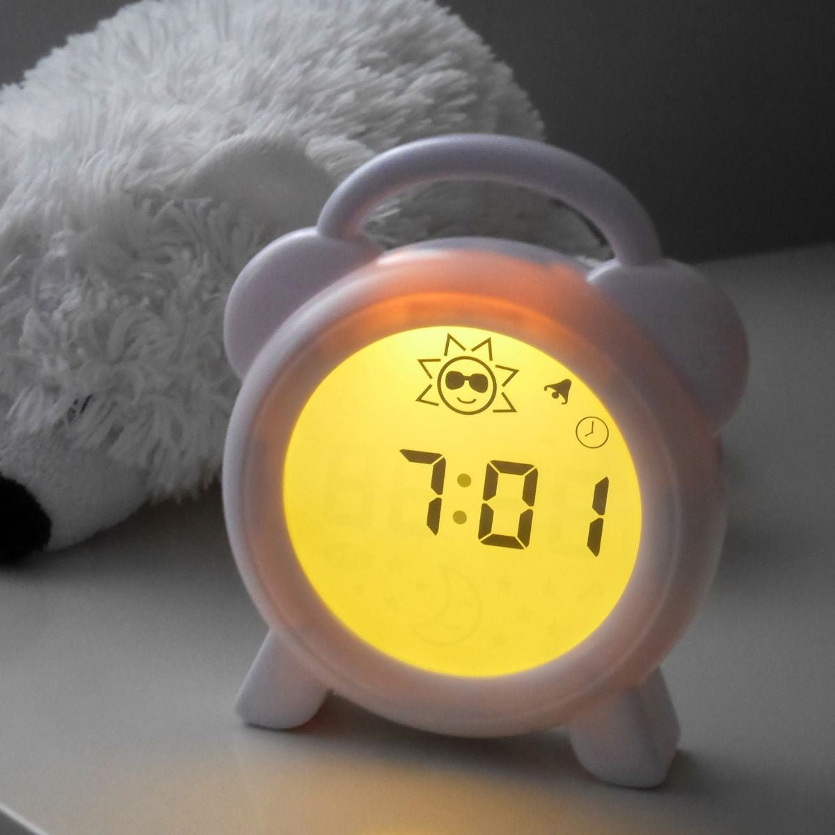 Durch das verspielte und schlichte Design der Uhr passt sie in jedes Kinderzimmer. Dieser praktische Nachtlichtwecker ist kabellos und wiederaufladbar (mit eingebauter Batterie und mitgeliefertem USB-Kabel) und kann auch separat als Uhr mit Wecker verwendet werden.