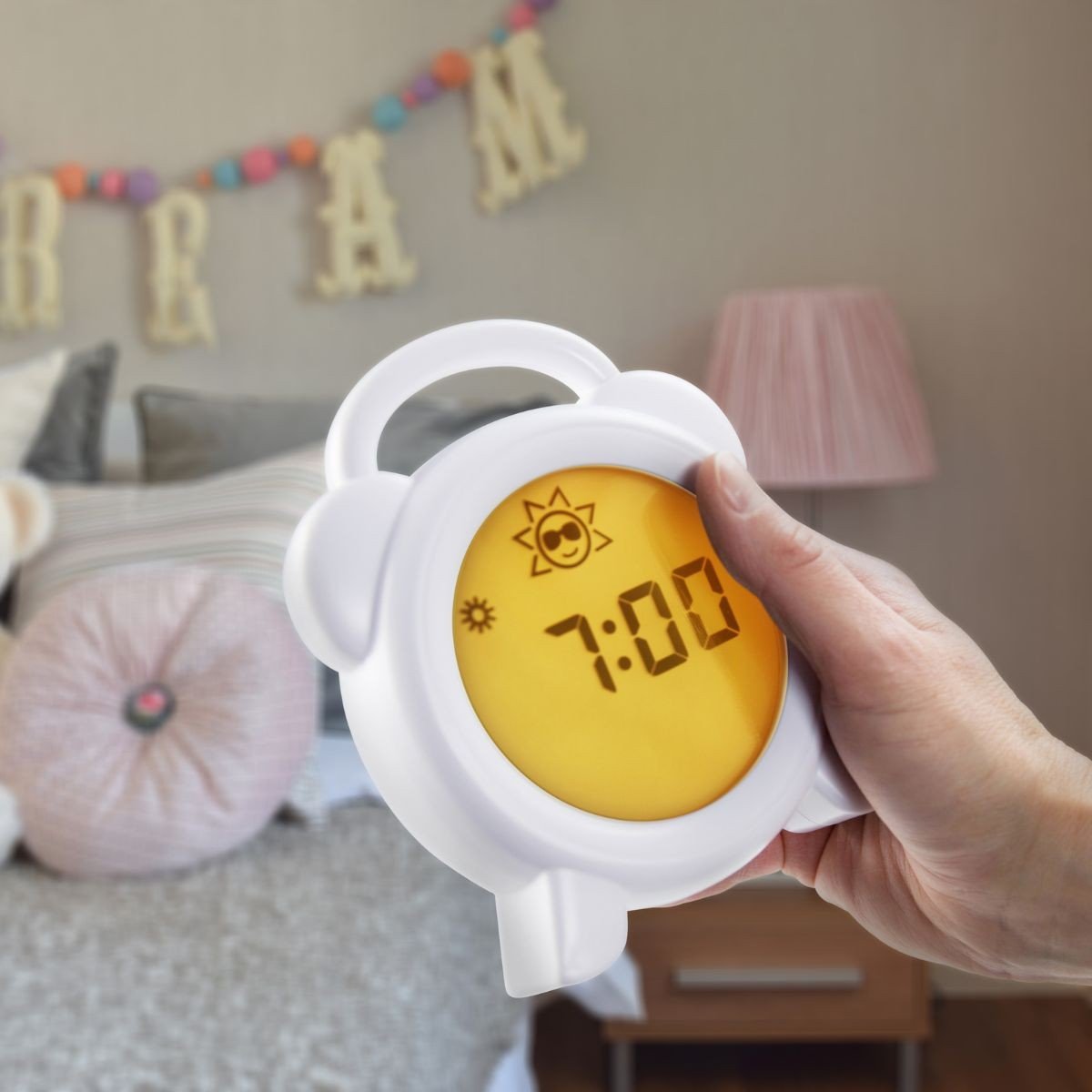 Dein Kind weiß anhand der Farben auf der Uhr sofort, wann es Zeit zum Schlafen oder Aufstehen ist.