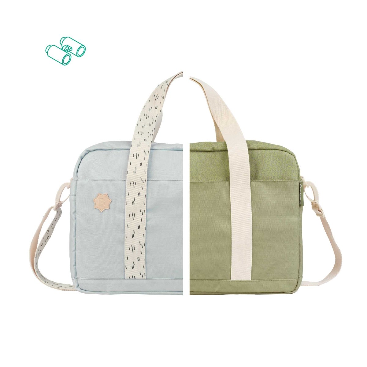 Mehrere Tragemöglichkeiten: in der Hand, auf der Schulter, quer über den Körper oder am Kinderwagen (inklusive Kinderwagenklammern)