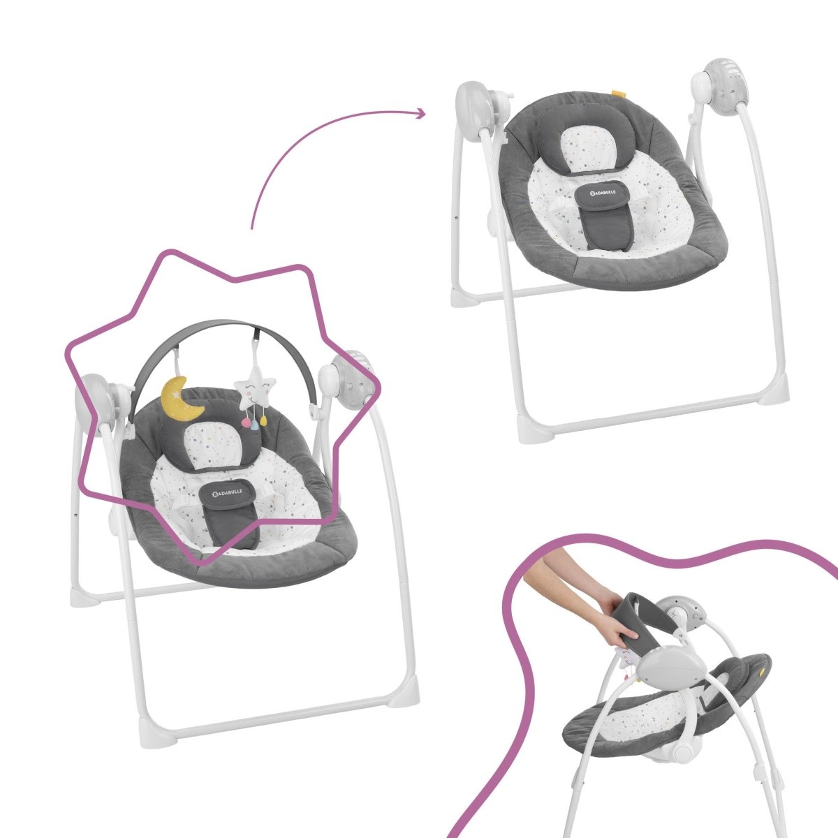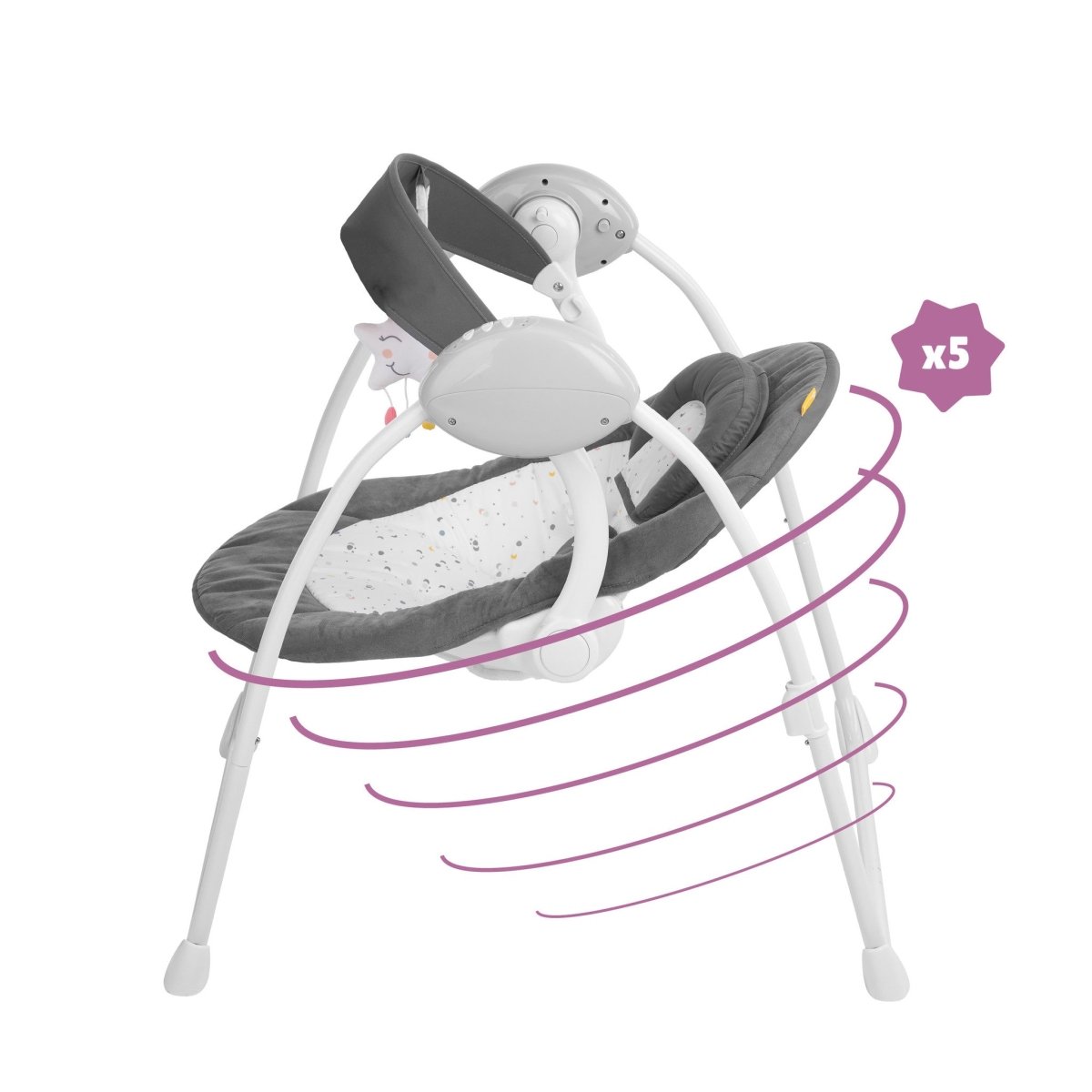 Komfortabel: Die komfortable Babyschaukel bietet eine weiche, gepolsterte Liegefläche und eine integrierte Kopfstütze für optimalen Kinderkomfort von Geburt an.Fünf Schwunggeschwindigkeiten und ein integrierter Timer (10, 20, 30 Minuten) für die Nutzung ganz nach deinem Geschmack.