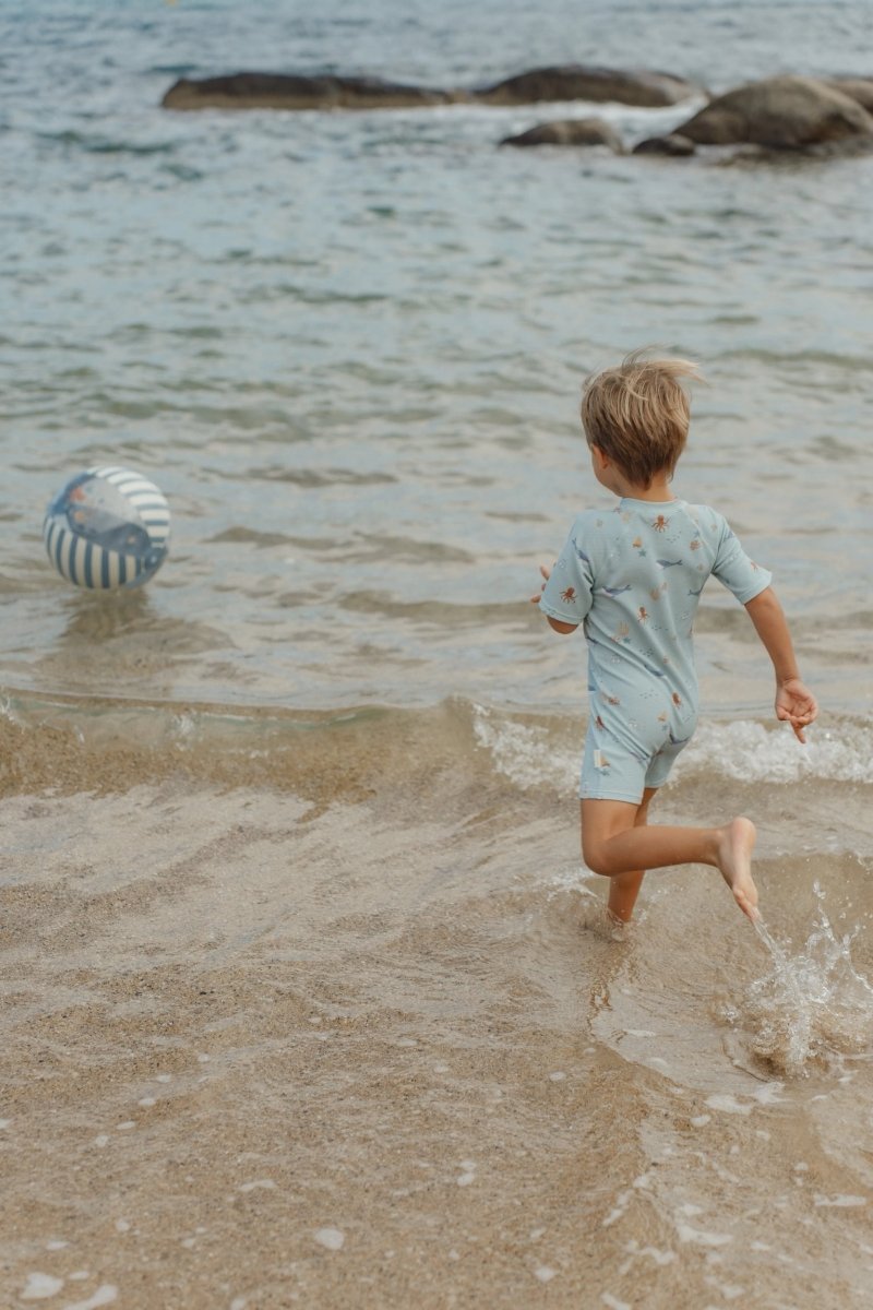 Beschreibung Bewertungen Über dieses Produkt Lass deinen Kleinen mit dem Ocean Friends-Badeanzug auf Entdeckungsreise gehen! Dieser kurzärmelige Badeanzug ist mit süßen Walen, fröhlichen Fischen und neugierigen Krabben verziert und lädt zu endlosem Wasserspaß ein. Eigenschaften: Farbe: Grün mit Meeresbewohner-Print Material: 94 % recyceltes Nylon/6 % Elasthan (weiche Waffelstruktur) Bequem, weich und dehnbar für optimale Bewegungsfreiheit Langer Reißverschluss: Leicht an- und auszuziehen UPF40+ Sonnenschutz für die Haut Pflege: Waschen bei 30 °C im Schonwaschgang, nicht bügeln, nicht chemisch reinigen, nicht bleichen, nicht für den Wäschetrockner geeignet Ein praktischer, stylischer und sicherer Badeanzug, der jedes Wasserabenteuer zu einem Fest macht Trustpilot