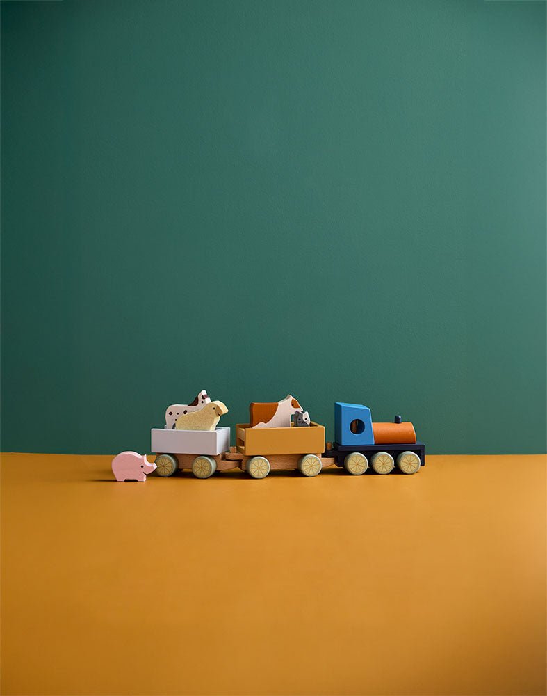 Produkt: Bauernhofeisenbahn aus Holz mit Tieren