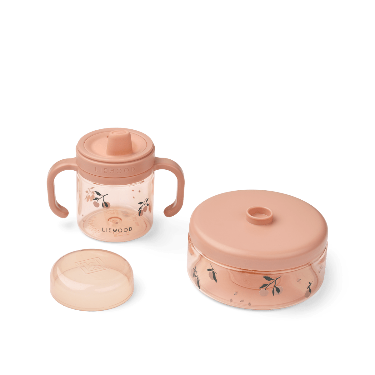 Set besteht aus dem KYLO Trinkbecher und der DOMINIQUE Box Trinkbecher: 280 ml, ausgestattet mit 2 Griffen zum einfachen Halten und Kippen Ausgestattet mit praktischem Deckel und weichem Silikonauslauf Nahrungsmittelbehälter: 100 ml, ideal für kleine Portionen von Pürees oder Snacks Leicht und unzerbrechlich, passt leicht in eine Tasche Dishwasher-safe Materialen: Körper: 100% Tritan Hals, Griff, Deckel: 100% Polypropylen Deckel: 100% Silikon Afmetingen: Tasse: Ø 8 cm | H 11 cm | Tasse mit Henkel: B 14 cm | Fassungsvermögen: 280 ml Lebensmitteldose: Ø 13 cm | H 6,5 cm | Inhalt: 100 ml Sichere Verwendung und Pflege: Lebensmittelsicher Nicht für den Ofen oder die Mikrowelle geeignet Spülmaschinenfest, aber Handwäsche empfohlen, um den Druck zu erhalten. Maximal 60°C. Gefrierschrankgeeignet WAARSCHUWING BEKER: Nur unter Aufsicht von Erwachsenen verwenden Langfristiges Lutschen kann Karies verursachen Überprüfe immer die Temperatur von Lebensmitteln oder Getränken vor dem Gebrauch Verwerfe das Produkt bei den ersten Anzeichen von Schäden Bewahre Teile außerhalb der Reichweite von Kindern auf Nicht an Kordeln, Bändern oder Kleidung befestigen Dieses Produkt ist kein Beißring Kinder nicht allein mit dem Trinkbecher lassen; Sturzgefahr Zahnverfall kann bei längerem Gebrauch auftreten, auch bei nicht süßen Getränken WAARSCHUWING VOEDSELDOOS: Das ist kein Spielzeug Stets unter Aufsicht von Erwachsenen verwenden Prüfe das Produkt vor dem Gebrauch und entsorge es bei den ersten Anzeichen von Schäden Überprüfe immer die Temperatur der Lebensmittel vor dem Gebrauch