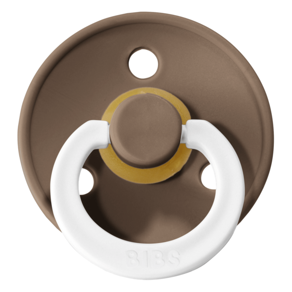 BIBS Colour ist der Original-Schnuller mit einem runden Schild und einem kirschförmigen Sauger.