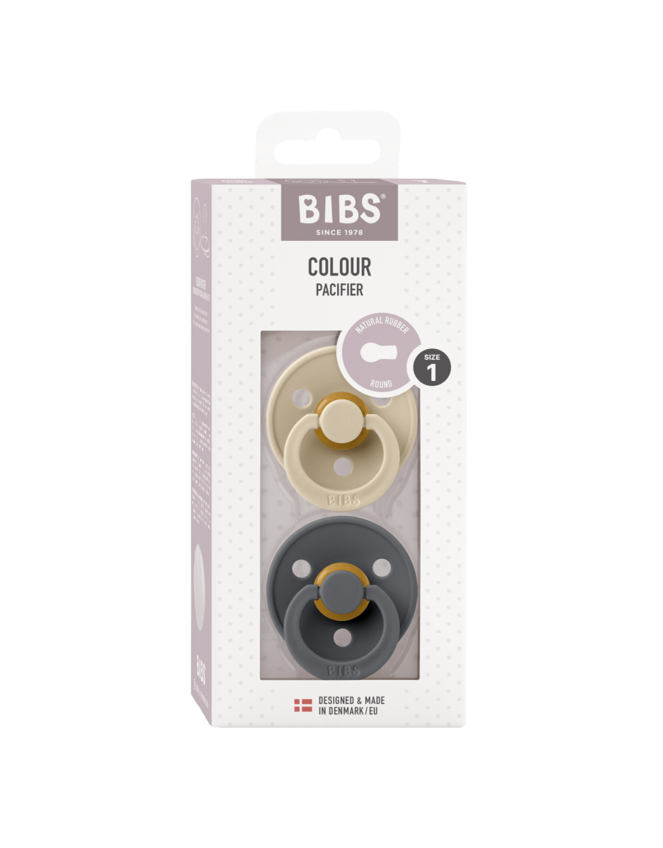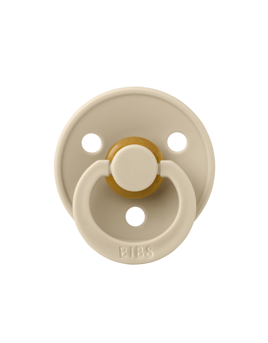 BIBS Colour ist der Original-Schnuller mit einem runden Schild und einem kirschförmigen Sauger.