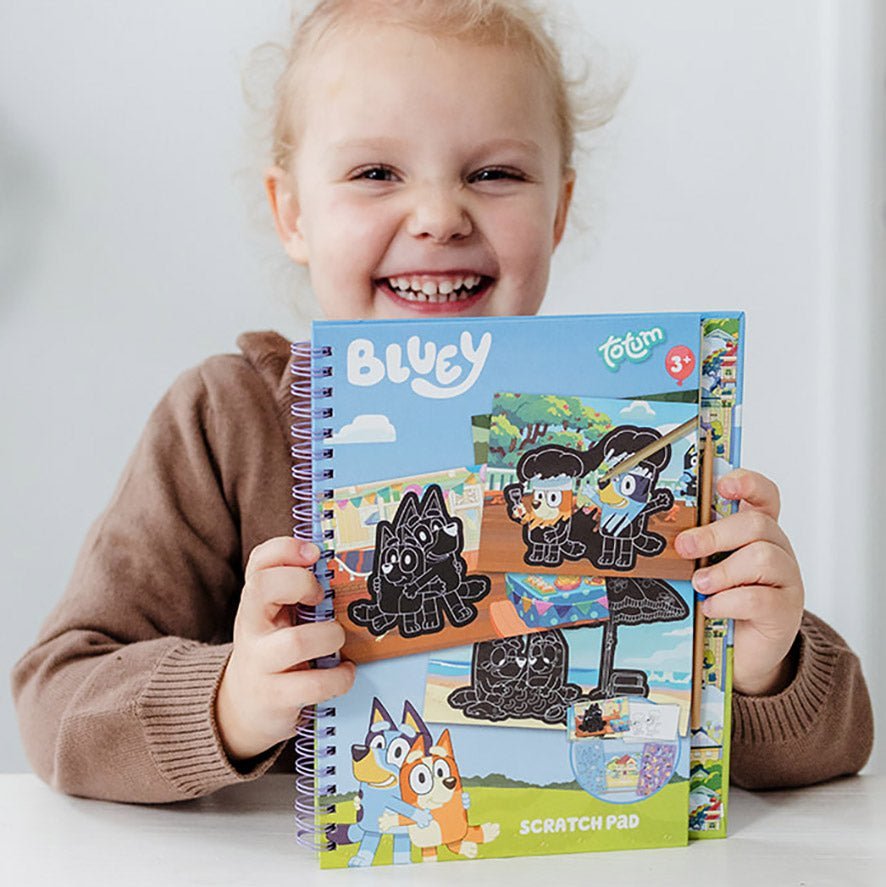 Mit diesem ringgebundenen Rubbelbuch kannst du die schönsten Rubbelkarten und Ausmalbilder mit Glitzereffekt herstellen. Kratz die schwarze Schicht weg und es kommen metallische Bluey-Figuren zum Vorschein, allein oder zusammen mit ihren Freunden! Auf der Rückseite der Blätter findest du zehn verschiedene Ausmalbilder, Aufkleber, eine wiederverwendbare Schablone und einen Rubbler. Ein toller Spaß für zu Hause, aber auch für unterwegs oder im Urlaub!