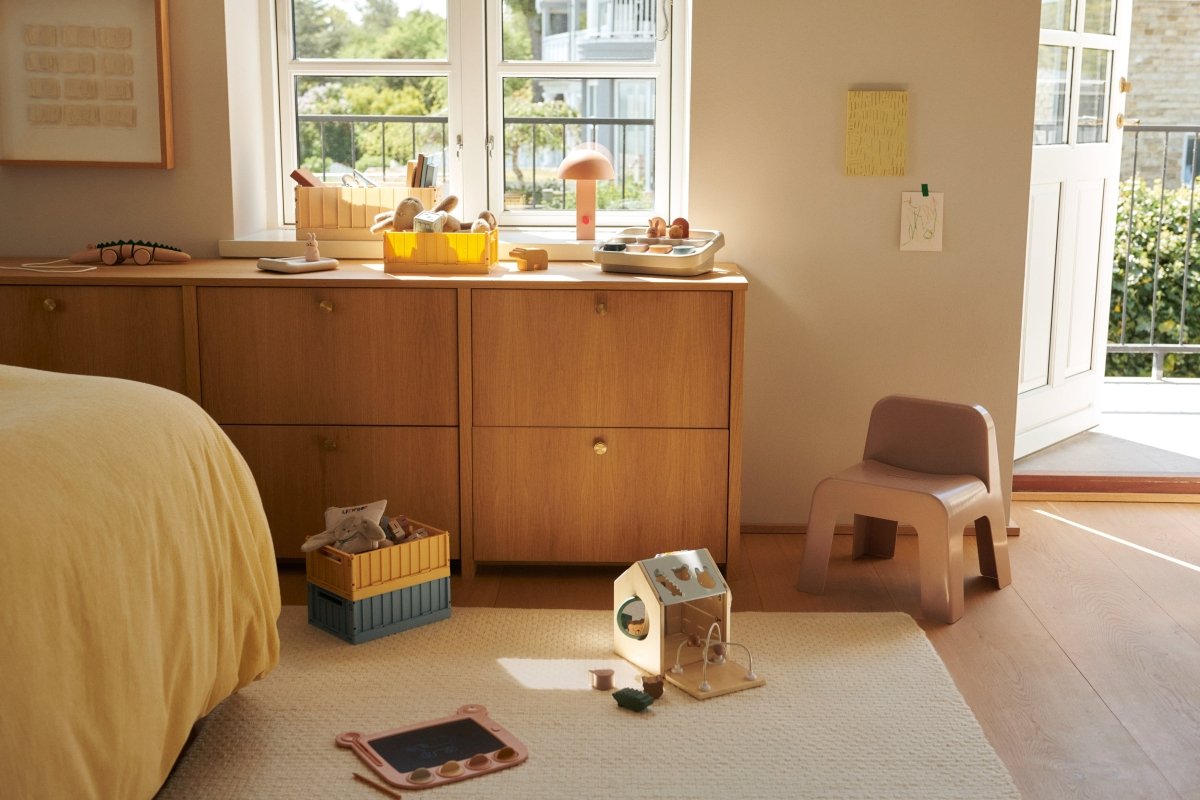 Geeignet für den Innen- und Außenbereich dank des langlebigen Materials und der leicht zu reinigenden Oberfläche Hergestellt aus 60% robustem, recyceltem ABS, ausgestattet mit rutschfesten TPE-Füßen Leicht, leicht zu bewegen und stapelbar, wenn nicht in Gebrauch Ergonomisches Design mit guter Rückenstütze Breite Beine für zusätzliche Stabilität Schlichter und praktischer Stuhl für Kinderzimmer und Außenbereiche Materiaal: Stuhl:60% recyceltes ABS, 40% ABS Kufenfüße: Thermoplastisches Elastomer (TPE) Afmetingen: Höhe: 43 cm Breite: 39 cm Tiefe: 36,5 cm Sitzhöhe: 28 cm Onderhoud: Mit einem feuchten Tuch abwischen und mit einem trockenen Tuch gut abtrocknen Waarschuwingen: Stell das Produkt nicht in der Nähe eines Fensters auf, es könnte als Trittstufe benutzt werden und das Kind könnte aus dem Fenster fallen Bitte achte auf offene Flammen und andere starke Hitzequellen in der Nähe des Produkts Stelle das Produkt nicht in der Nähe eines Fensters auf, wo die Schnüre von Jalousien oder Vorhängen das Kind strangulieren könnten