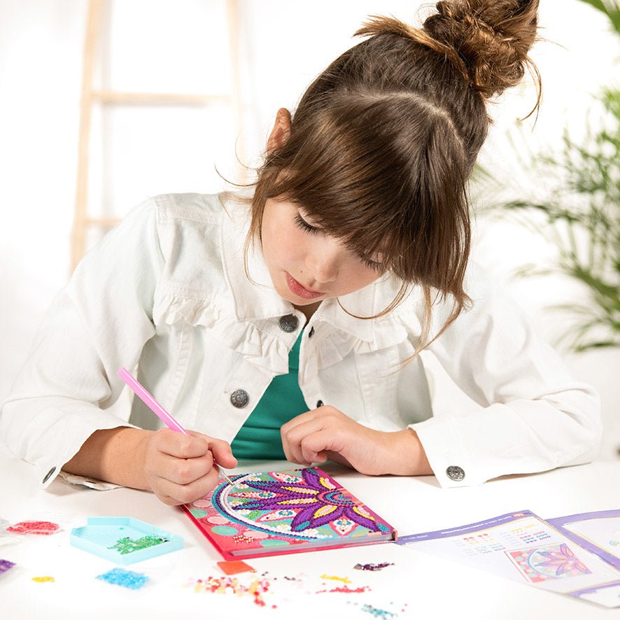 Mit diesem Set kannst du dein eigenes Notizbuch mit Glitzersteinen verzieren. Das Set enthält eine Vorlage und mehr als 1.500 Strasssteine, mit denen du die gesamte Vorderseite bedeckst. Nutze das Notizbuch für all deine Notizen, Gedichte, Wünsche oder als Tagebuch.