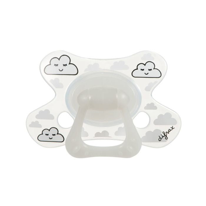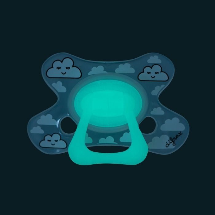 Glow in the Dark Schnuller; leicht zu finden im Dunkeln!Die Schmetterlingsform lässt die Nase frei Verhindert Hautreizungen durch optimale Luftzufuhr Der halbgefüllte Sauger fördert das Abgewöhnen Der Difrax Schnuller Dental 12+ Monate befriedigt das Saugbedürfnis deines Babys. Der Schnuller stimuliert die Entwicklung der Gaumen-, Kiefer- und Zungenmuskulatur. Die Größe des Schnullerschilds und die des halb gefüllten Lutschteils sind speziell für Babys ab 12 Monaten konzipiert. Der Ring des Glow in the Dark-Saugers absorbiert Licht und leuchtet im Dunkeln. Die Größe des Schnullerschilds und die des halb gefüllten Lutschteils sind speziell für Babys ab 12 Monaten konzipiert. Dieser einzigartige Schnuller hat ein schmetterlingsförmiges Schild, wodurch er sich dem Gesicht deines Babys wunderbar anpasst. Die Nasenmulde ermöglicht es deinem Baby, frei durch die Nase zu atmen. Die Löcher ermöglichen eine zusätzliche Luftzirkulation und verhindern Hautreizungen. Der Saugteil des 12+ Monate Schnullers ist etwas härter als der 6+ Monate Schnuller, aber weicher als der 18+ Schnuller. Dadurch wird der Saugreiz verringert, was der erste Schritt zur Entwöhnung ist. Der Schnuller oder das Tut gibt deinem Baby Komfort, Ruhe und Entspannung. Difrax Schnuller gibt es in vielen trendigen Prints und verschiedenen Größen. Tipp: Tausche den Schnuller alle sechs Wochen aus. Ziehe das Ansaugteil täglich heraus, um zu prüfen, ob es unbeschädigt ist.