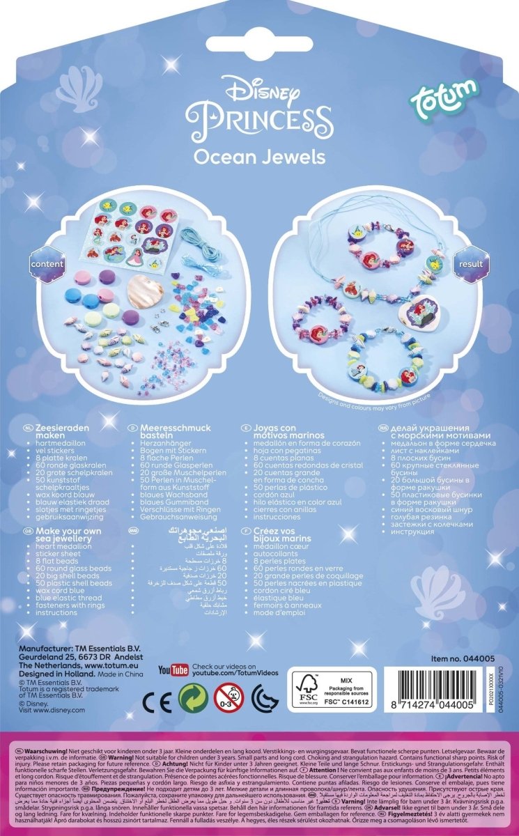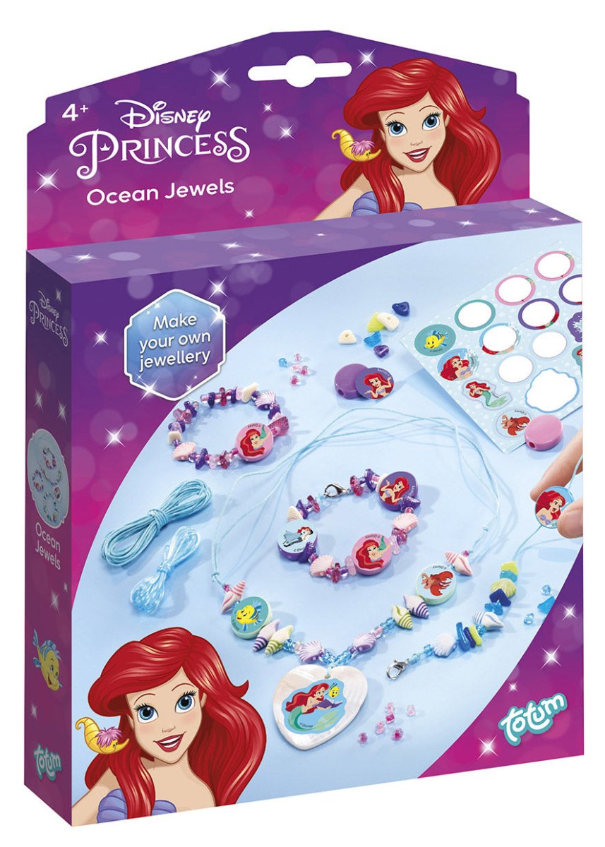 Stell dir vor, du wärst in der Welt des Meeres mit Ariel und den Disney Princess Ocean Jewels. Stelle deinen eigenen Meeresschmuck aus den schönsten Materialien her, darunter Herzanhänger und besondere Muschelperlen in fröhlichen Farben. Ein komplettes Set, mit dem du deine Lieblings-Disneyprinzessin immer bei dir trägst. Fördert die Kreativität, die Feinmotorik und die Konzentration, außerdem macht es Spaß, gemeinsam zu basteln. Sehr niedlich und stolz auf dein eigenes Ergebnis!