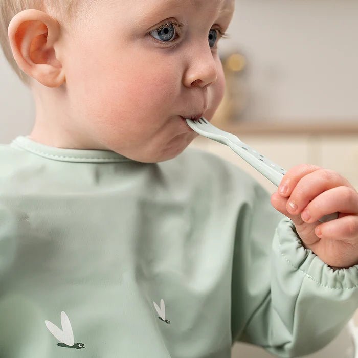 Das Foodie-Besteck hat weiche, abgerundete Ecken und ist damit sicher für kleine Kinder, die das selbstständige Essen üben. Das Besteck passt perfekt in kleine Hände und wurde von Kindern gründlich getestet. Das niedliche Besteckset für Babys und Kleinkinder besteht aus einem Löffel, einer Gabel und einem Messer. Wenn sich das Besteck bei unzähligen Familienessen bewährt hat, kann es als Plastik sortiert und zu neuen Produkten für den Alltag recycelt werden. Das coole grüne Besteckset mit den verspielten Happy Dots bringt Schwung in jede Mahlzeit. Die seidenglatte, matte Oberfläche passt zum Rest der Foodie-Kollektion. Spülmaschinenfest (max. 70°C) und mikrowellengeeignet. Nicht im Backofen verwenden. 100% PP für Lebensmittel.