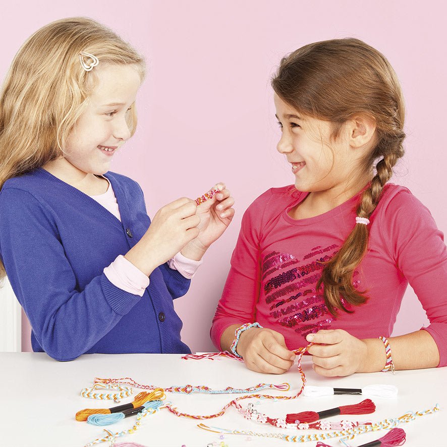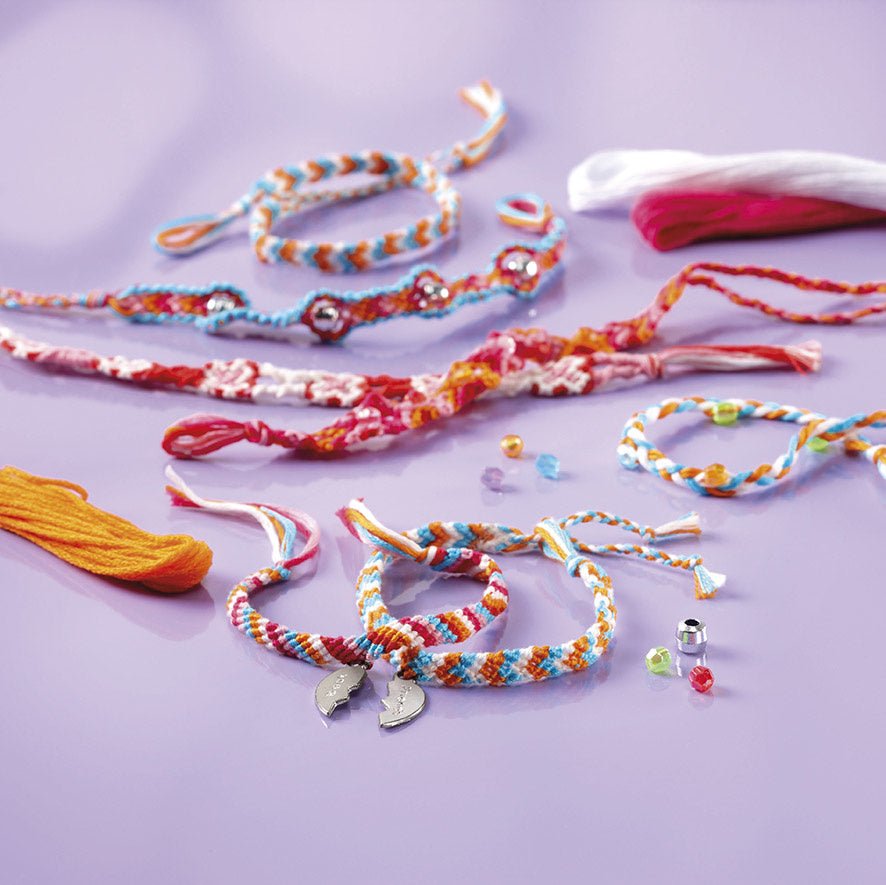 Bastle Freundschaftsarmbänder in verschiedenen Farben mit zusätzlichen Perlen und Anhängern. Inhalt: Draht in verschiedenen Farben, Freundschaftsanhänger, Perlen und Anleitung.