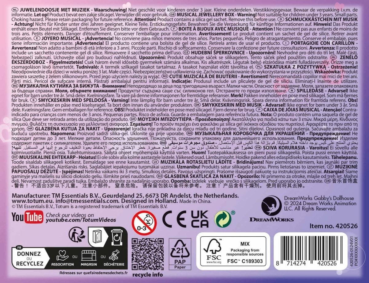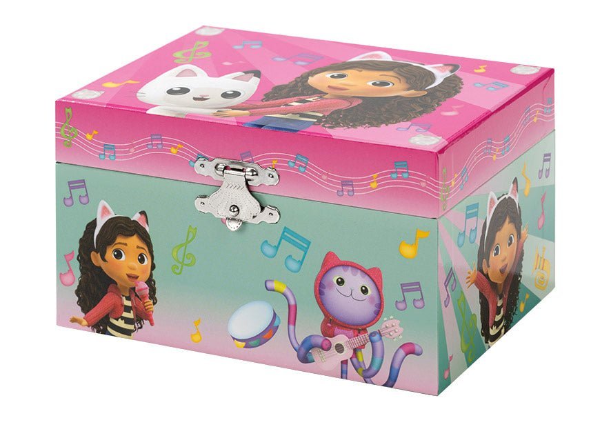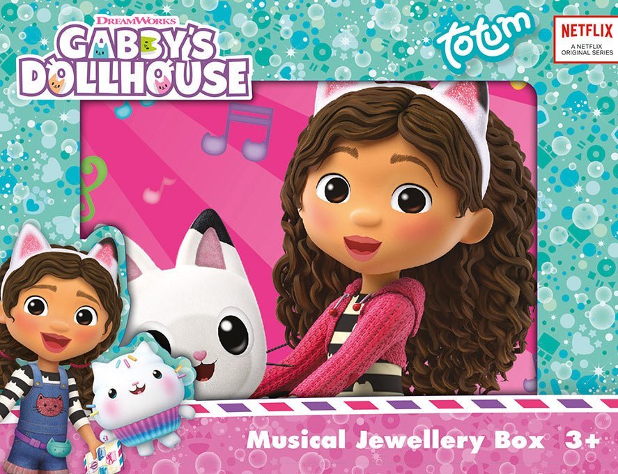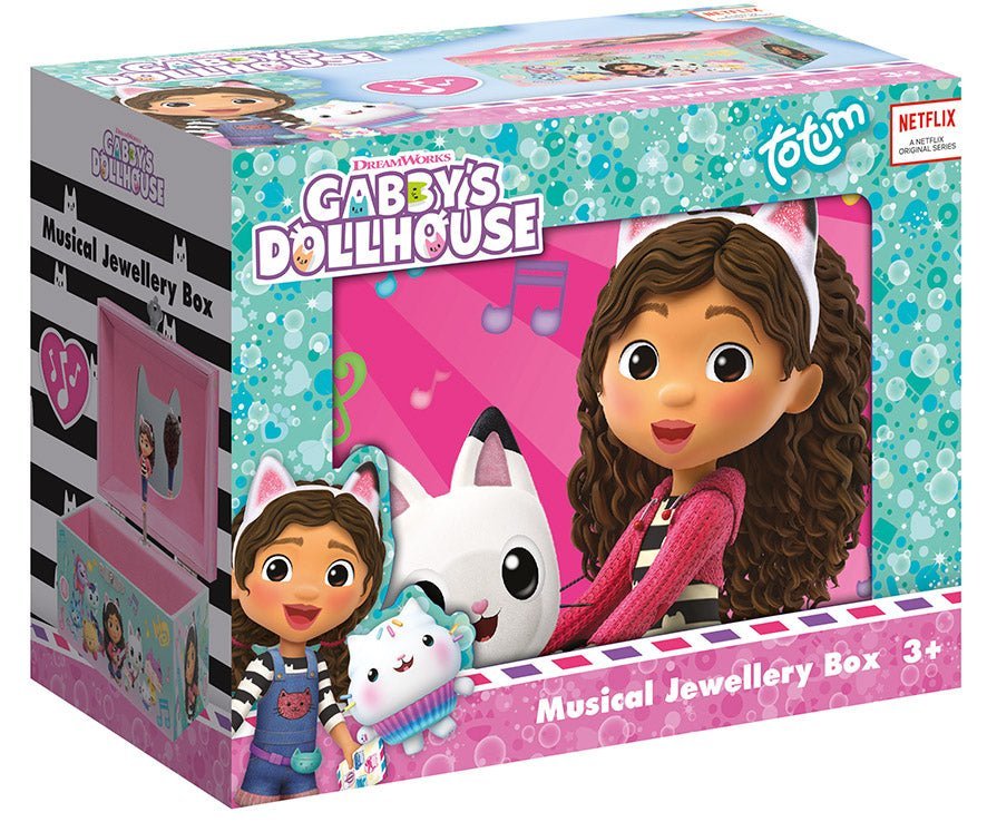 Diese farbenfrohe Gabby's Dollhouse Schmuckschatulle mit Musik hat genug Platz für die schönsten Schätze. Die Box ist ganz im Zeichen von Gabby und ihren Katzenfreunden gestaltet. Und nicht nur das: Wenn die Schachtel geöffnet wird, ertönt Musik und Gabby selbst tanzt vor dem katzenförmigen Spiegel herum. Ein süßes und nützliches Geschenk für eine bleibende Erinnerung, ideal für kleine Gabby's Dollhouse Fans.