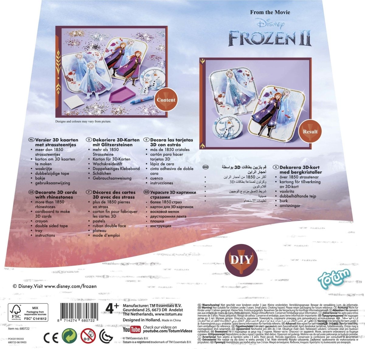 Kreiere atemberaubende Elsa-, Anna- und Olaf-Diamantenmalkreationen mit diesem kompletten Frozen 2-Set, das mehr als 1850 Glitzerdiamanten, ein Sortier- und ein Applikationswerkzeug enthält.