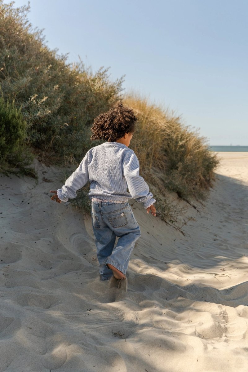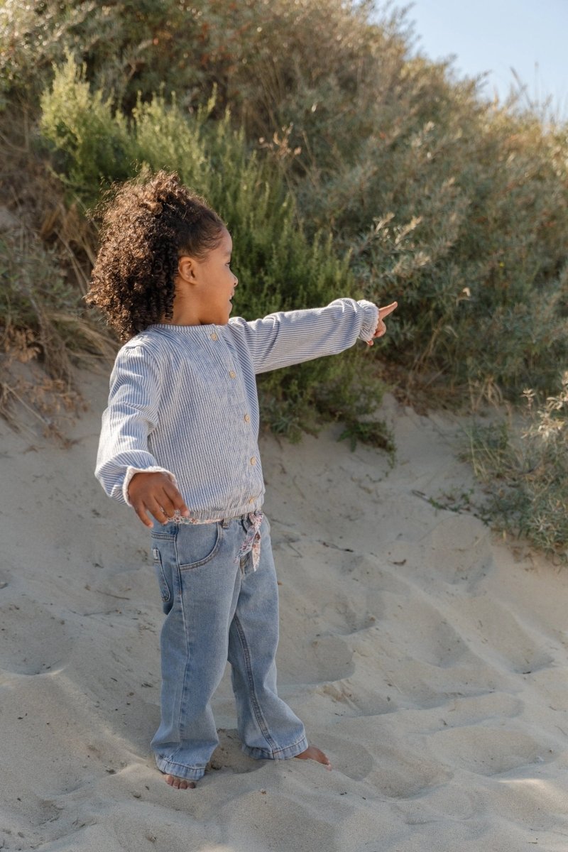 Der robuste und dennoch bequeme Denim ist aus Bio-Baumwolle hergestellt und Öko-Tex-zertifiziert - eine sichere und verantwortungsvolle Wahl, jeden Tag. Die geräumige Passform bietet viel Bewegungsfreiheit, egal ob dein Kleines rennt, klettert oder leise die Welt entdeckt. Für einen farbenfrohen und charaktervollen Look kannst du die Hose mit einem Top oder einer Jacke mit demselben Blumenmuster kombinieren.