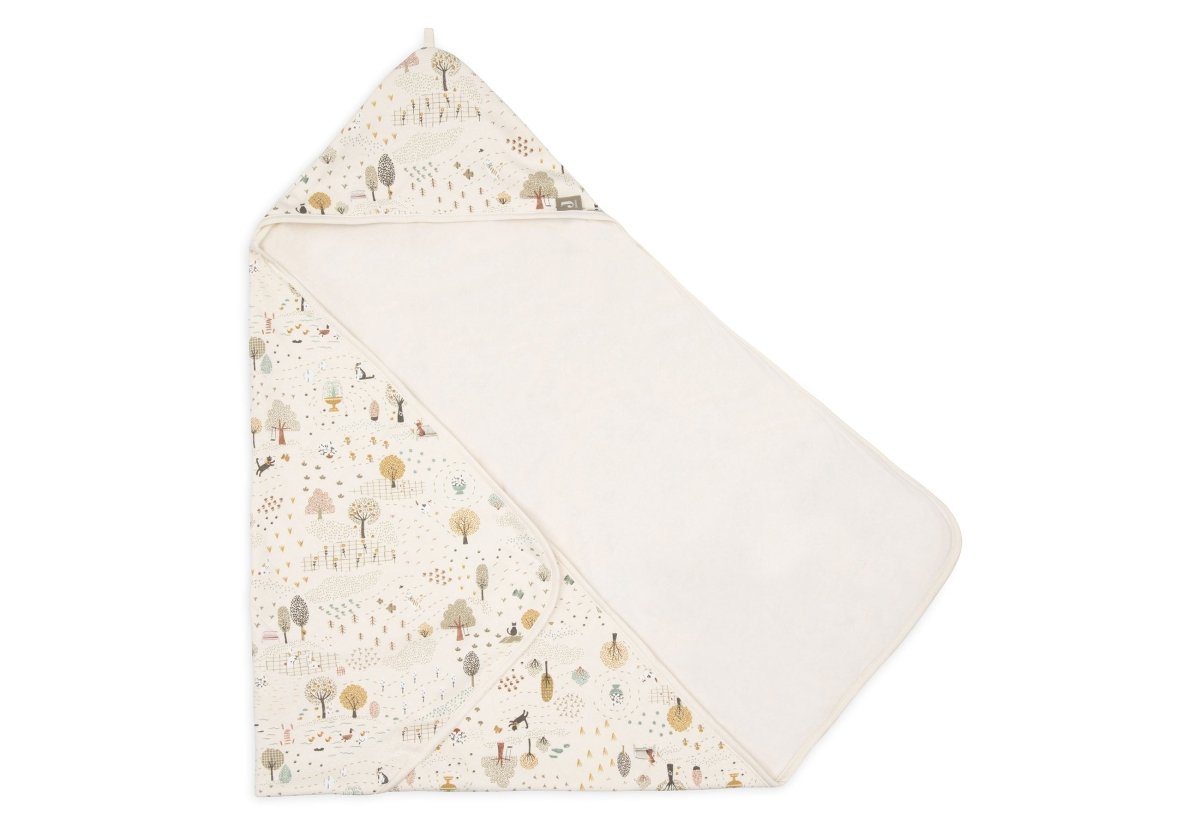 Dieses niedliche Badetuch ist perfekt, um dein Kind nach dem Baden abzutrocknen. Die Außenseite besteht aus weichem Jersey-Stoff mit einem niedlichen Allover-Print aus der Tiny Park-Kollektion, während die Innenseite für zusätzlichen Komfort mit superweichem Frottee in der Farbe Haferflocken gefüttert ist. Mit seiner Größe von 75x75cm ist dieses Badetuch ideal für dein Kleines und eignet sich hervorragend zum Einwickeln nach einem schönen Bad!