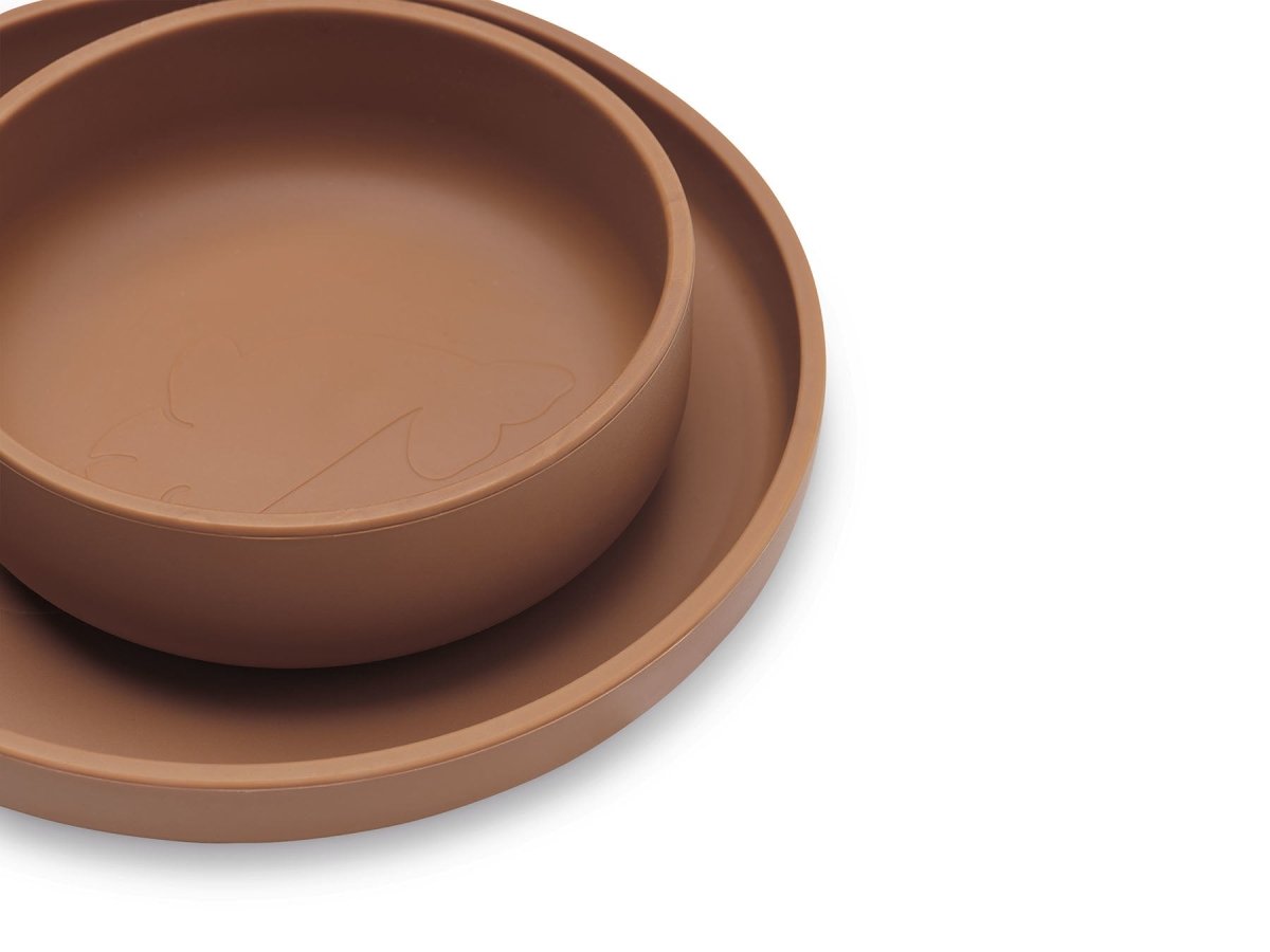 Mit diesem flexiblen Kindergeschirr aus Silikon kann sich dein Kind am Tisch austoben. Wenn du dich im selbstständigen Essen übst, wird es dir von nun an gut gehen. Und der geschmeidige Löffel macht es angenehm, das Essen zu lernen. Das flexible Silikonmaterial ist für dein Baby leicht zu halten, wird nicht heiß und kann nicht brechen. Befestige den Teller mit einem praktischen Saugnapf an der Tischwanne. Selbst Rosenkohl und Chicorée kannst du dein Baby getrost probieren lassen, der Teller wird nicht mehr vom Tisch gefegt. Mit dem Silikonbecher kann dein Kind sicher lernen, selbstständig zu trinken. Egal, wie oft ihnen der Becher aus der Hand fällt, er kann nicht zerbrochen werden. Natürlich gehört auch eine Schüssel zu diesem Geschirr. Das macht dieses Tafelservice komplett. Alle Komponenten sind absolut sicher. Er kann Temperaturen von bis zu 230 Grad standhalten und auf -20 Grad gekühlt werden. Außerdem wiegt er sehr wenig, so dass du ihn auf Reisen ganz einfach in deiner Tasche oder deinem Koffer mitnehmen kannst. Und wenn du es komplett machen willst, kombiniere dieses Kindergeschirr mit einem passenden Silikonlätzchen mit Tropfschale. Bei all dem Herumspielen und Experimentieren mit Essen und Getränken bleibst du einfach entspannt! Nach dem Essen sammelst du die Silikonattribute und hoppa, ab in die Spülmaschine mit ihnen. So kann nicht nur das Geschirr, sondern auch dein Tag nicht schiefgehen. Mach weiter so mit deinen gemütlichen Tischgesprächen. Du bist bereit dafür! Auch ein tolles Mutterschaftsgeschenk. Die Eltern werden dir für dieses Geschenk noch lange danken. FarbeErhältlich in sechs trendigen Unifarben. Du kannst zwischen Grau, Nougat, Blau, Rosa, Grün und Karamellbraun wählen. MaterialDas gesamte Kindergeschirrset besteht aus einem Teller, einer Tasse, einer Schüssel und einem Löffel und ist aus 100% Silikon gefertigt. 100% frei von BPA, PVC und PHTHALATEN. ReinigungAlle Teile können in die Spülmaschine (ja wirklich! Du hast richtig gelesen).