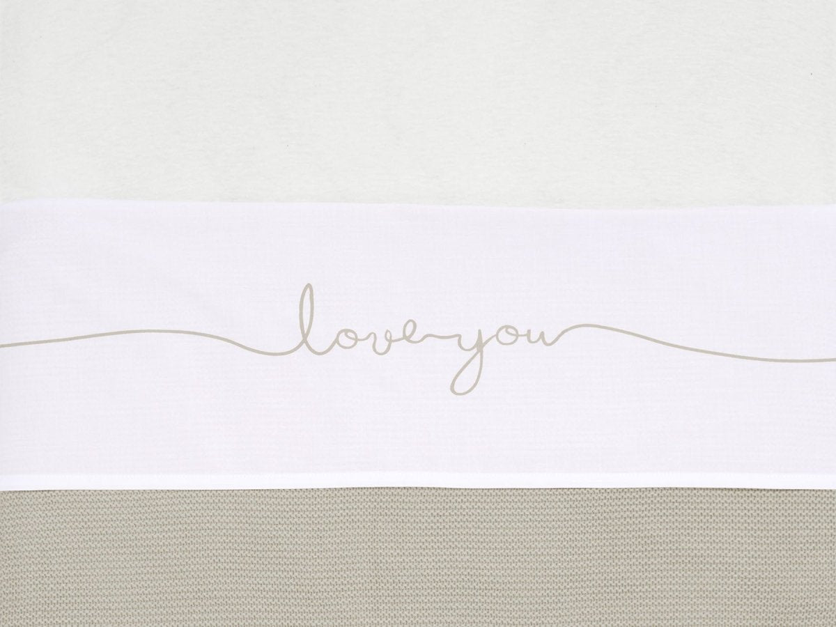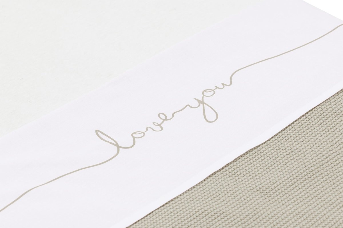 Mit dem weißen Laken kannst du das Bett deines Babys sicher machen, kurz und fest. Indem du die Seiten des Lakens unter die Matratze steckst, schläft dein Kleines nicht nur sicher, sondern hat auch ein Gefühl der Sicherheit. Dieses süße kleine Blatt mit dem Text "love you" passt perfekt zu den Decken aus dem Basic-Strickthema und dem Bliss-Strickthema von Jollein. FarbeIn allen Fällen ist das Bettlaken weiß, der Druck ist in sechs verschiedenen Farben erhältlich: Karamellbraun, Grau, Flieder, Nougatcreme, Rosa und Steingrün. Da du aus sechs verschiedenen Farben wählen kannst, findest du immer eine passende Decke. FormatMit der Größe 75x100 cm passt das Laken in eine Wiege oder einen Kinderwagen. Es ist auch in einer größeren Größe für ein Kinderbett erhältlich. Material100% Baumwolle.