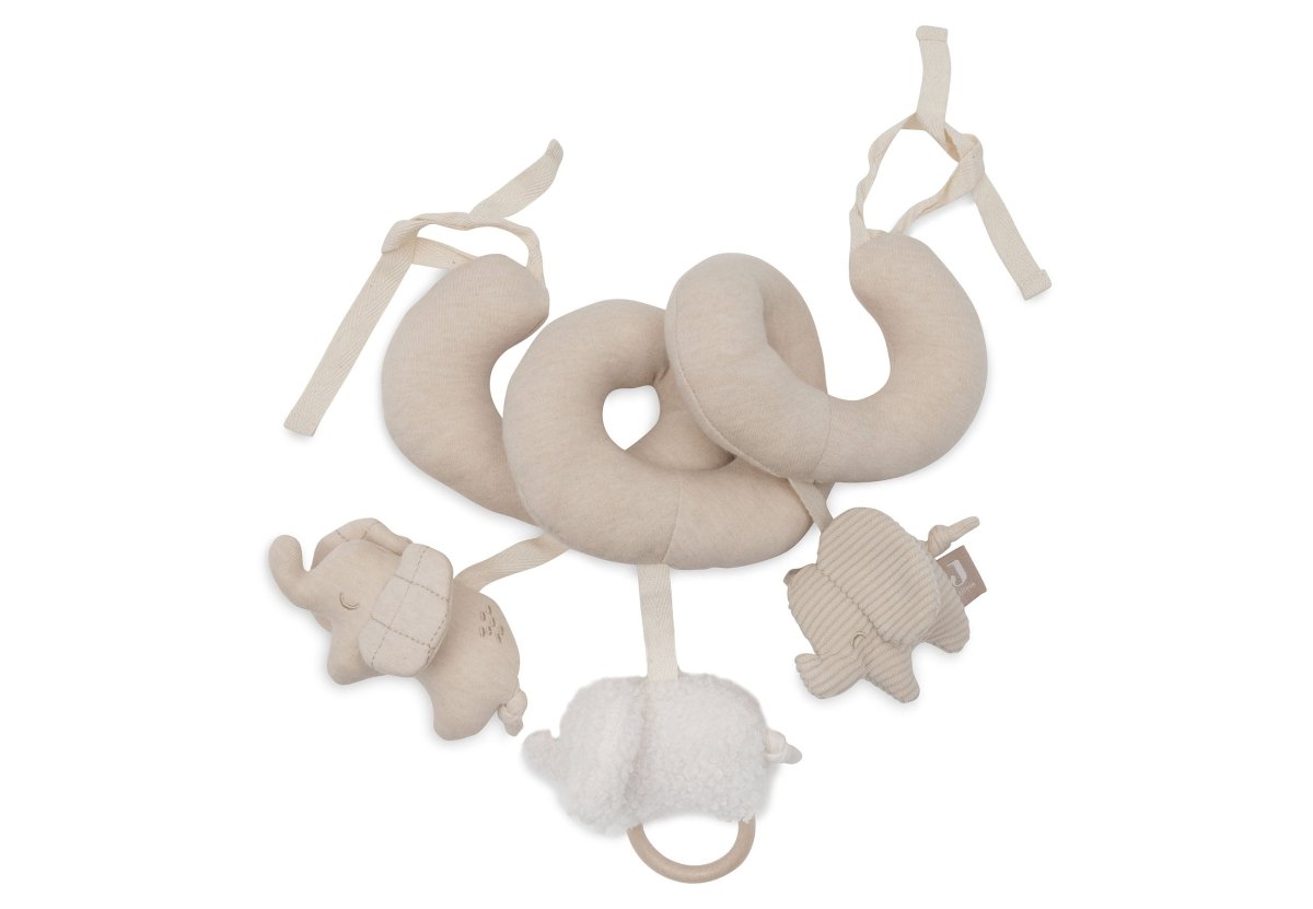 Diese fröhliche Aktivitätsspirale aus der Elephant Tales Kollektion wurde speziell dafür entwickelt, die Sinne deines Babys zu stimulieren und seine motorische Entwicklung zu fördern. Mit drei niedlichen Elefanten, die jeder für sich einzigartig aussehen - einer aus weichem gerippten Stoff, einer mit karierten Ohren und der dritte aus luxuriösem Samtstoff - bietet diese Spirale verschiedene Texturen und Farben, die die Neugier deines Kindes wecken werden. Du kannst sie ganz einfach um den Griff des Maxi-Cosi oder am Laufstall befestigen, damit dein Baby sein Lieblingsspielzeug immer griffbereit hat.