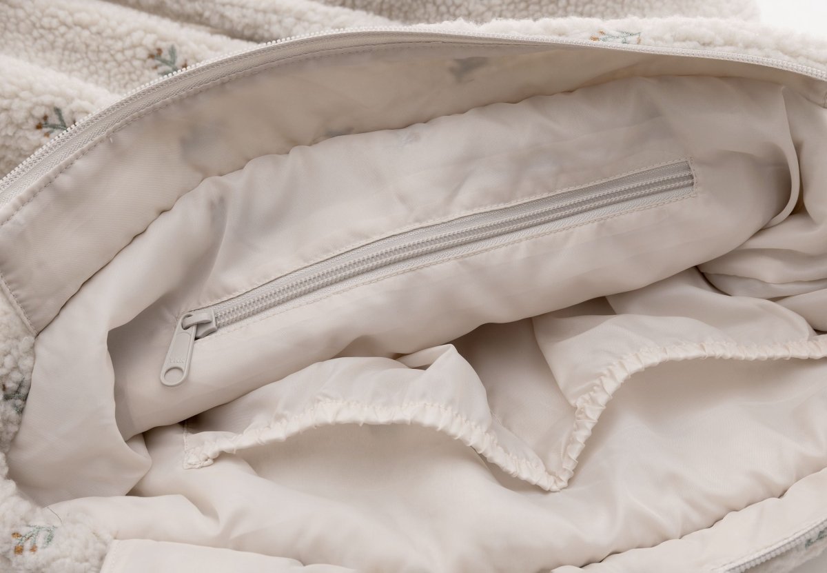 Die perfekte Mama-Tasche! Diese super trendige Windeltasche ist aus mega weichem Bouclé gefertigt. Natürlich kannst du die Tasche auch für dich selbst, zum Sport oder als Schulranzen verwenden. Die Tasche hat den schönen Aufdruck Lovely, mit floralen Details in einem dicken Teddystoff. Außerdem hast du 2 praktische Staufächer im Inneren und eine Wickelunterlage ist standardmäßig enthalten. Die Windeltasche wird mit einem Reißverschluss geschlossen. Die Tasche hat extra lange Griffe, damit du sie nicht nur über die Schulter, sondern auch quer über den Körper oder um den Kinderwagen tragen kannst.