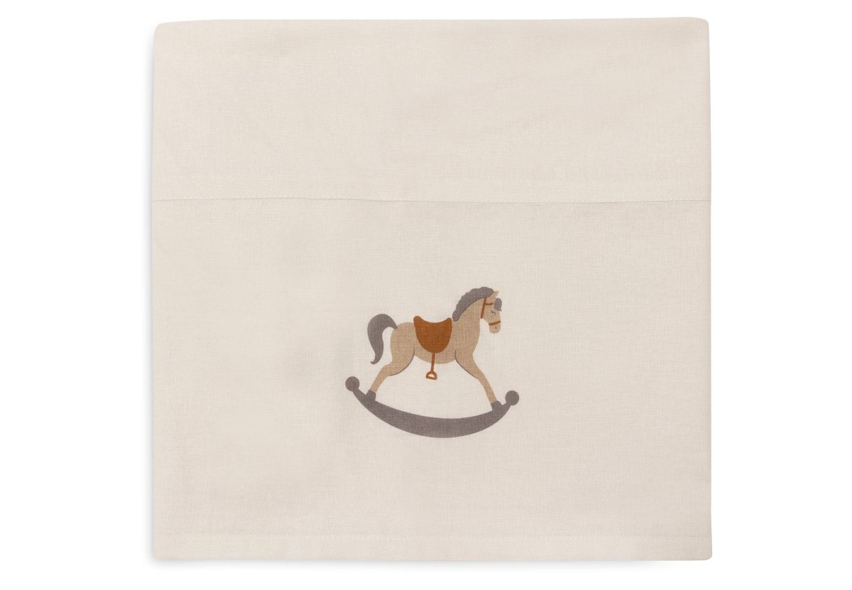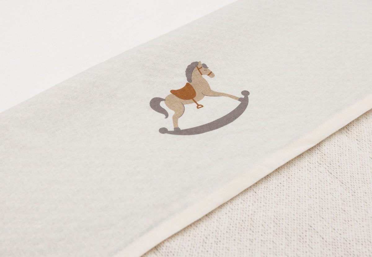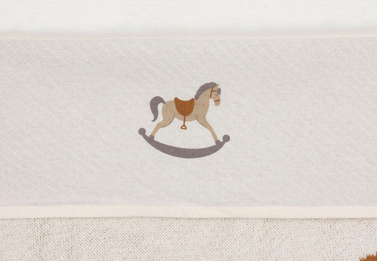 Ja, es ist Zeit, dieses unglaublich niedliche Bettlaken aus der Nostalgic Ride Kollektion zu zeigen. Dieses elfenbeinfarbene Laken hat einen unifarbenen Aufdruck mit einem abgebildeten Pferd an der gefalteten Kante des Lakens. Dieses Laken passt perfekt zu der Decke aus der Check Knit Kollektion. Dieses Laken eignet sich für die Wiege, ist aber auch für das Kinderbett erhältlich.