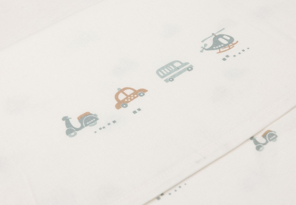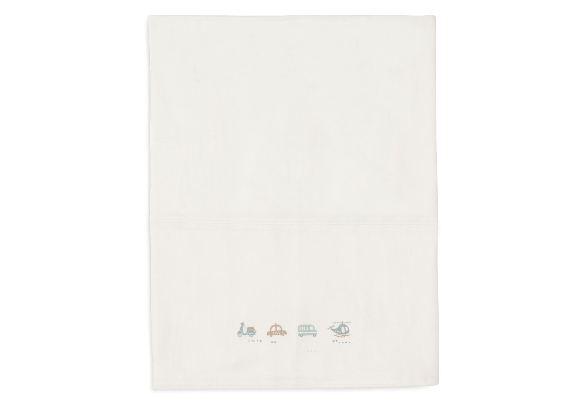 Lass dein Kleines unter diesem schönen Laken aus dem On The Go-Thema träumen! Dieses elfenbeinfarbene Laken hat einen verspielten Aufdruck mit zwei Autos, einem Roller und einem Hubschrauber auf der gefalteten Kante. Diese Decke lässt sich perfekt mit Decken aus der Cosy Knit Kollektion kombinieren und ist in Größen für Wiege und Kinderbett erhältlich.