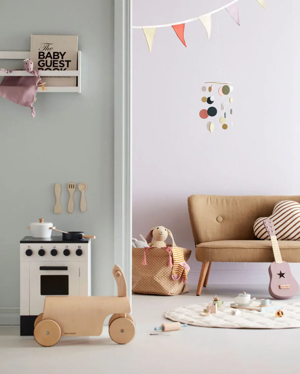 Toddlekind Ein dekoratives Holzmobile in Blau- und Grüntönen. Perfekt, um die Aufmerksamkeit des Babys auf die sich bewegenden Kreise zu lenken oder als dekoratives Element in jedem Kinderzimmer. Jede Holzplatte ist mit Farbe auf Wasserbasis gefärbt. Außerhalb der Reichweite von kleinen Kindern aufbewahren.