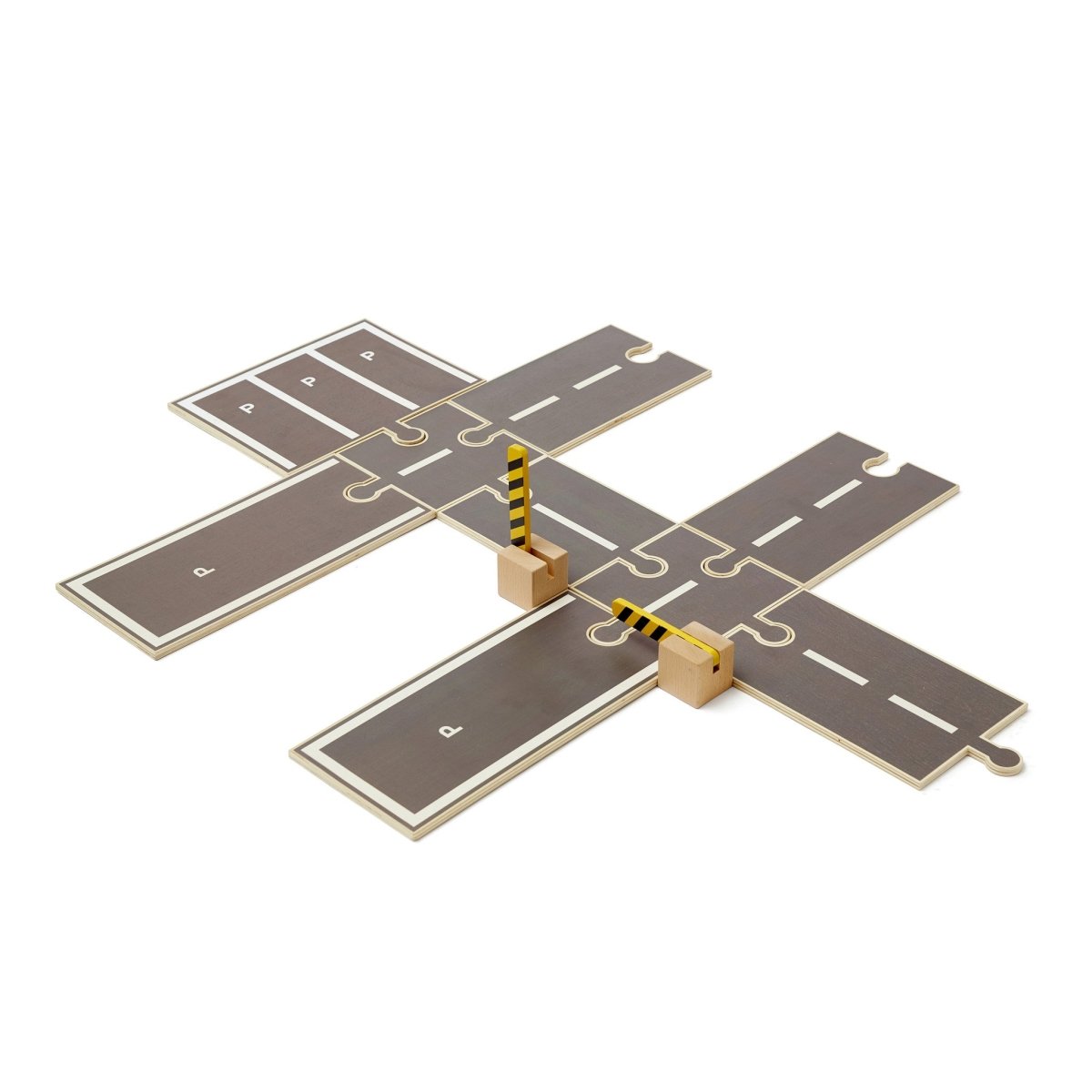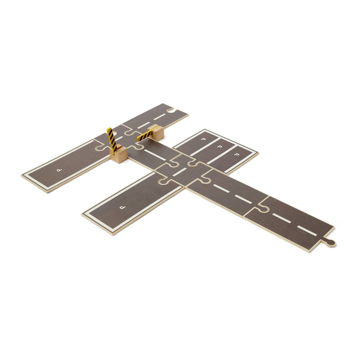 Materialbeschreibung: Puzzleteil: Birkensperrholz.Straßensperren: Buche.