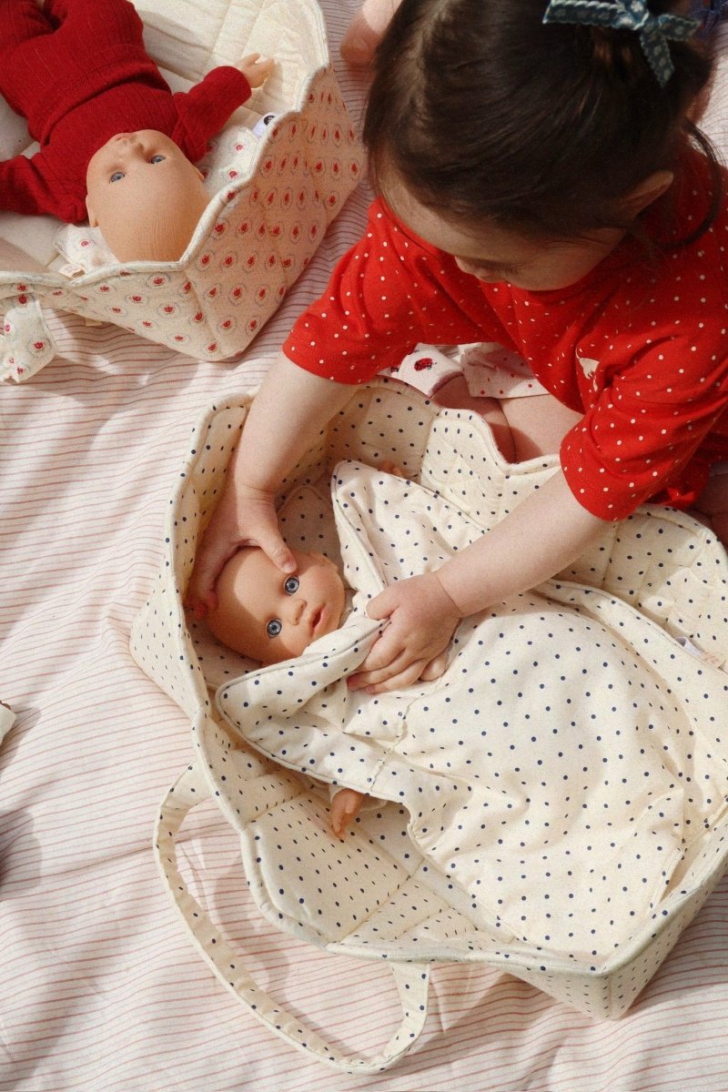 Weiche gesteppte Puppenbettwäsche aus 100% Baumwolle, perfekt für ein gemütliches und komfortables Puppenbett. Die weiche Paspelierung sorgt für ein stilvolles Finish. Die Bettwäsche wird in einer passenden Tragetasche mit Kordelzugverschluss geliefert, die praktisch für die Aufbewahrung oder zum Mitnehmen auf Reisen ist.