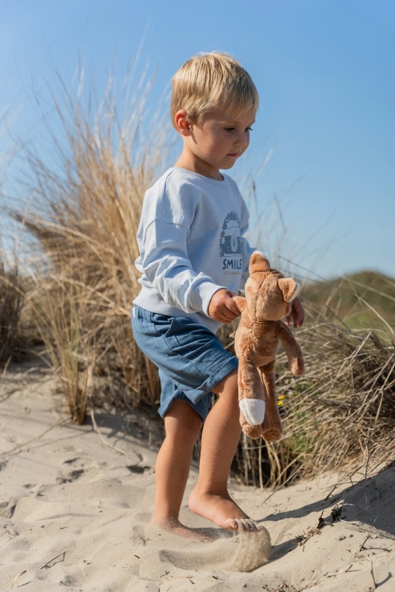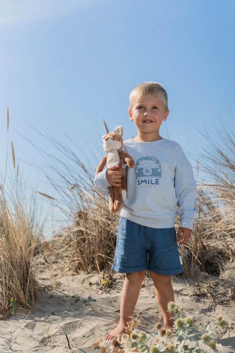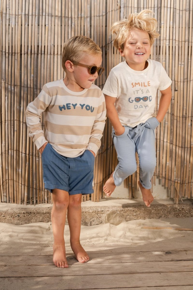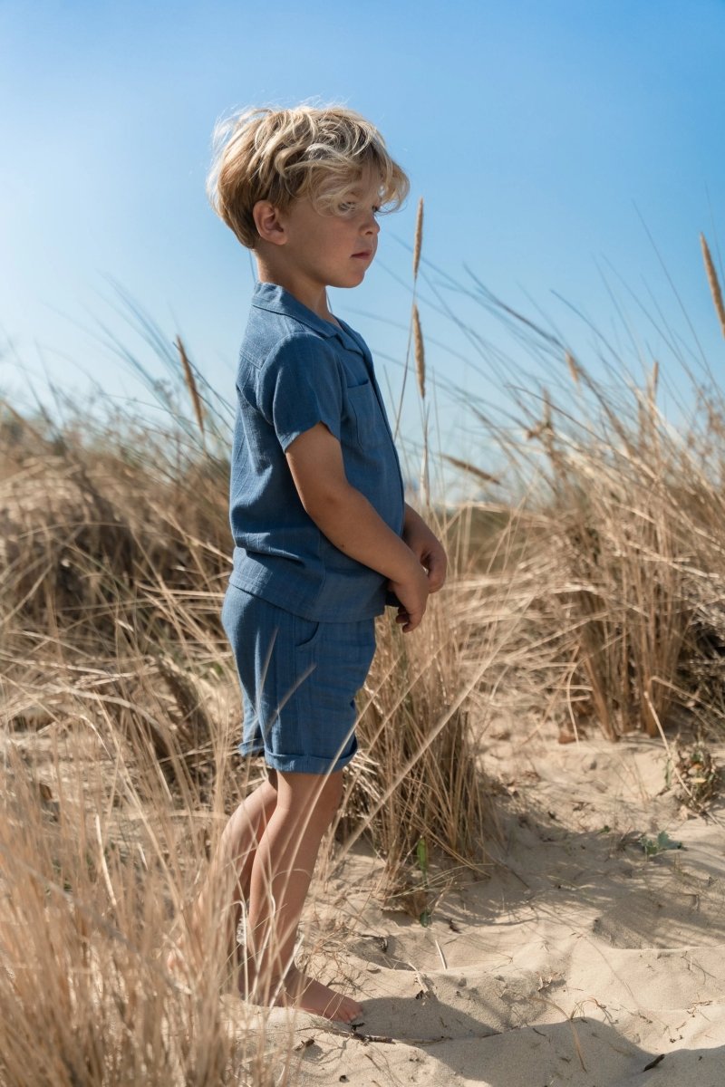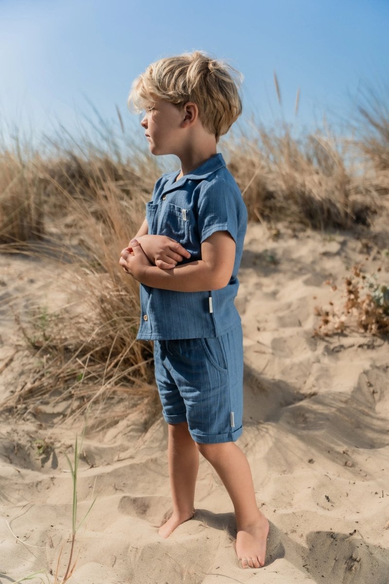 Glänzend, cool und perfekt für sonnige Tage: Diese Shorts in Indigo sind aus einem bequemen Stoff in Leinenoptik mit dezenten Streifendetails gefertigt. Der elastische Bund mit Kordelzug sorgt für einen bequemen Sitz, während die Umschläge an den Beinen und die Seitentaschen einen verspielten Touch verleihen. Die Hose besteht aus 55% Viskose und 45% Bio-Baumwolle und ist Öko-Tex-zertifiziert. Sie fühlt sich weich und atmungsaktiv an.