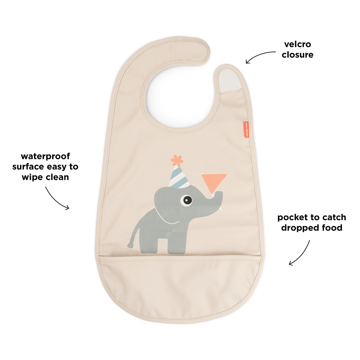 Schütze die Kleidung deines Kleinen beim Essen mit diesem Rutschlätzchen in der Farbe Celebration Sand. Hergestellt aus 100% Polyester mit PU-Beschichtung, wasserabweisend und leicht zu reinigen.