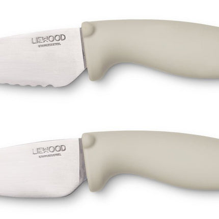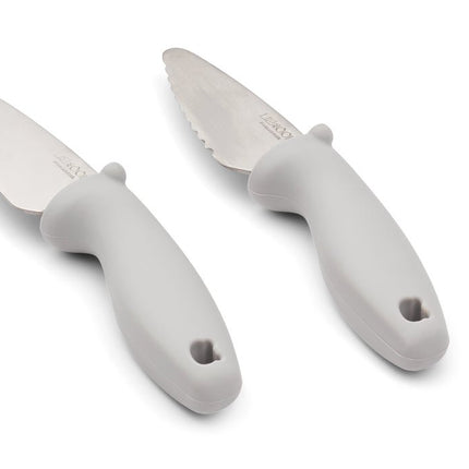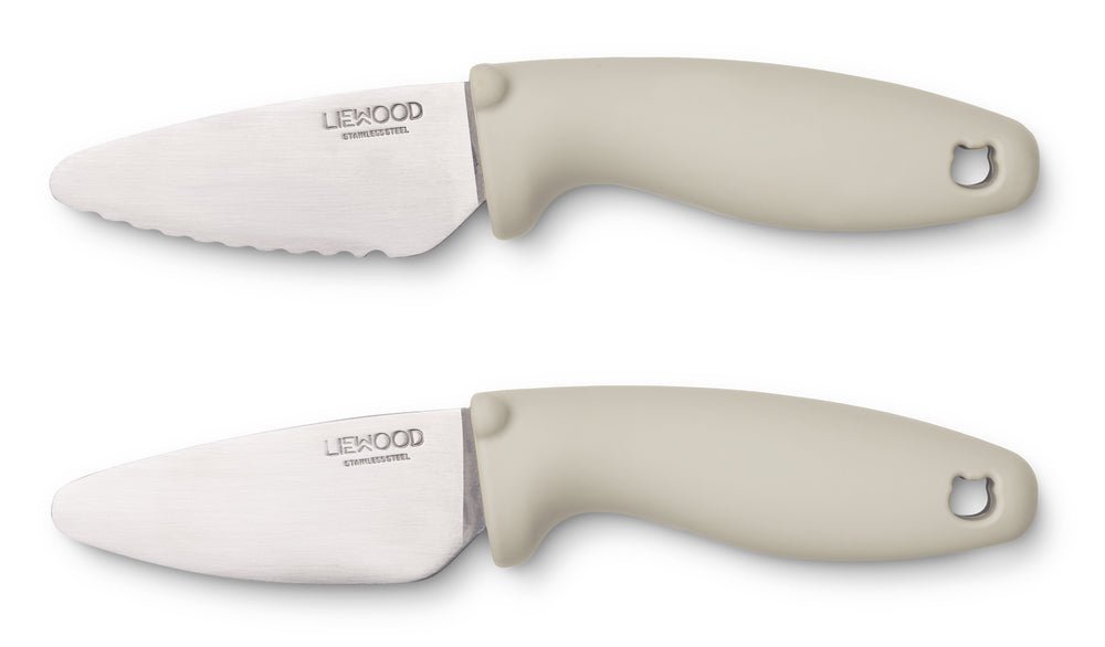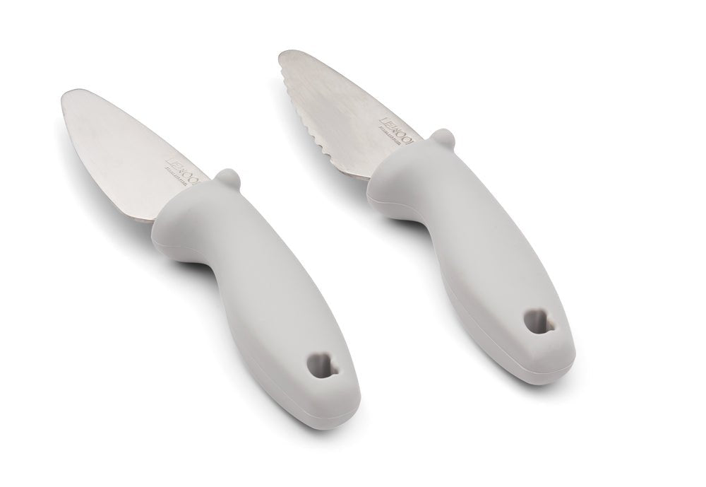 Schneidemesserset für Kinder. Damit die Kleinen Selbstvertrauen in der Küche gewinnen. Enthält ein Set mit zwei kinderfreundlichen Messern. Konzipiert für ältere Kinder. Empfohlenes Alter: 5-7 Jahre, abhängig von den Fähigkeiten des Kindes. Die Beaufsichtigung durch einen Erwachsenen ist notwendig. Spülmaschinenfest