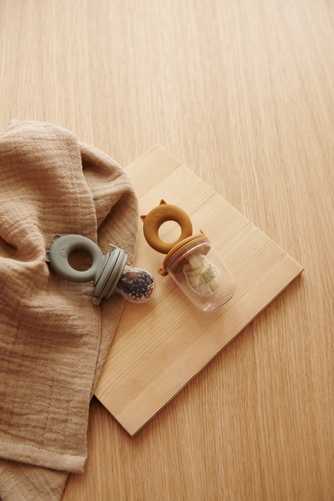 Perfektes Zubehör für die Einführung fester Nahrung. Ein einfacher Behälter für kleine Lebensmittel.