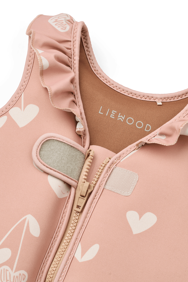 Vergewissere dich, dass die Weste sicher ist: Frontreißverschluss und Klettverschluss, Gurt zwischen den Beinen mit Schnappverschluss