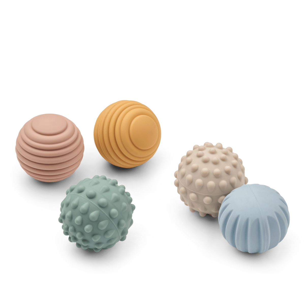 Sensory Ball Set Beach Blue/Multi Mix Set aus 5 weichen Sinnesbällen: Jeder Ball hat eine einzigartige Textur, die es zu erkunden gilt Sicher und langlebig: Hergestellt aus 100% Silikon; weich für empfindliches Zahnfleisch und kann als Beißspielzeug verwendet werden. Entwicklungsorientiert: Leicht und einfach zu greifen, ideal für die Schulung der Feinmotorik. Perfekt für kleine Entdecker: Geeignet zum Spielen, Fühlen, Greifen und Beißen. Material und Produktion 100% Silikon Hergestellt in China Alter: 6+ Monate UKCA- und CE-gekennzeichnet Afmetingen Durchmesser: 6,2 cm Onderhoudsinstructies Reinigen in warmem Wasser mit milder, unparfümierter Seife Gründlich abspülen Gründlich mit einem trockenen Tuch abtrocknen Reguläre Reinigung Waarschuwingen Entferne alle Verpackungen und Etiketten vor dem Gebrauch. Reinige das Produkt vor dem ersten Gebrauch.