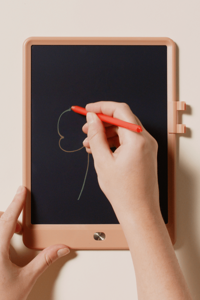 Ein lustiges Gadget für Kinder, um ihre Zeichenfähigkeiten zu trainieren. Schiebeverschluss auf der Rückseite zum Aufbewahren von Zeichnungen.Drücke die Fronttaste, um den Bildschirm zu löschen und zu aktualisieren.