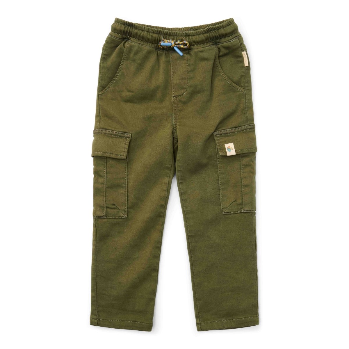 Diese dunkelgrüne Cargo-Jogginghose ist aus dehnbarer Bio-Baumwolle gefertigt. Sie verfügt über praktische Seitentaschen und coole Cargotaschen an der Seite. Der elastische Bund hat einen farbigen Kordelzug für einen verspielten Touch und eine eng anliegende Passform. Diese Jogginghose passt zu allen Shirts und Pullovern aus der Farm-Kollektion, so dass du von Kopf bis Fuß gestylt bist. Erhältlich in den Größen 74, 80, 86, 92, 98 und 104.
