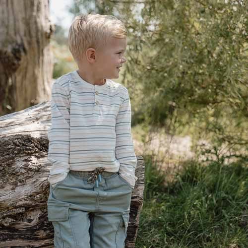 Passt perfekt für jedes Abenteuer! Diese waldgrüne Cargo-Sweatpants bietet Komfort und Stil für aktive Entdecker. Die Hose aus dehnbarer Bio-Baumwolle ist für jedes Abenteuer geeignet, das sich dein Kleines ausdenkt. Mit praktischen Seitentaschen und coolen Cargotaschen an der Seite, in denen du kleine Schätze verstauen kannst. Der elastische Bund hat einen farbigen Kordelzug für einen verspielten Touch und eine eng anliegende Passform.