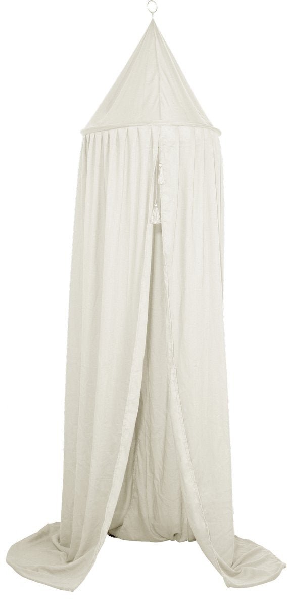 Schaffe einen gemütlichen Schlaf- oder Spielbereich mit diesem schönen Moskitonetz. Wenn du es als Baldachin von der Decke hängst, verleiht es dem Babyzimmer eine schöne Atmosphäre. Das hydrophile Moskitonetz sorgt dafür, dass sich dein Baby sicher und wohl fühlt und garantiert Nächte voller schöner Träume. Lege das Moskitonetz über eine weiche Spielmatte oder einen Teppich und es verwandelt sich in ein magisches Spielzelt. Es sieht im Kinderzimmer toll aus und dein Kleines wird die gemütliche Ecke zum Spielen oder Lesen lieben. Das Moskitonetz ist in schönen Farben erhältlich und lässt sich wunderbar mit unserer Textilkollektion und den Teppichen kombinieren. Der leichte Stoff ist mit Reifen versehen und oben mit einer Kordel zum einfachen Aufhängen. Die zwei kleinen Quasten sorgen für ein kleines Extra, aber du kannst das Moskitonetz auch mit einem Traumfänger, einem Mobile oder etwas Selbstgemachtem wie einer Girlande schmücken. Achte darauf, dass das Moskitonetz sicher hängt und berücksichtige die Entwicklung deines Babys, damit sich dein Kind nicht im Stoff verheddert. Ein Moskitonetz ist schön für ein Baby, weil es ihm ein Gefühl der Sicherheit vermittelt. Außerdem sieht es im Zimmer deines Babys gut aus. Das Moskitonetz gibt es in allen möglichen Farben, so dass es immer eine gibt, die zum Zimmer deines Babys passt.