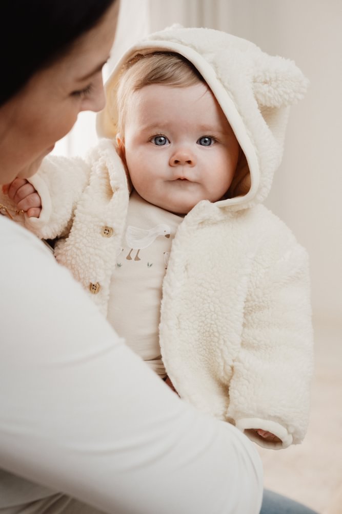 Diese Jacke kombiniert Langlebigkeit, Komfort und niedliche Details und ist damit die perfekte Wahl für die Garderobe deines Neugeborenen.