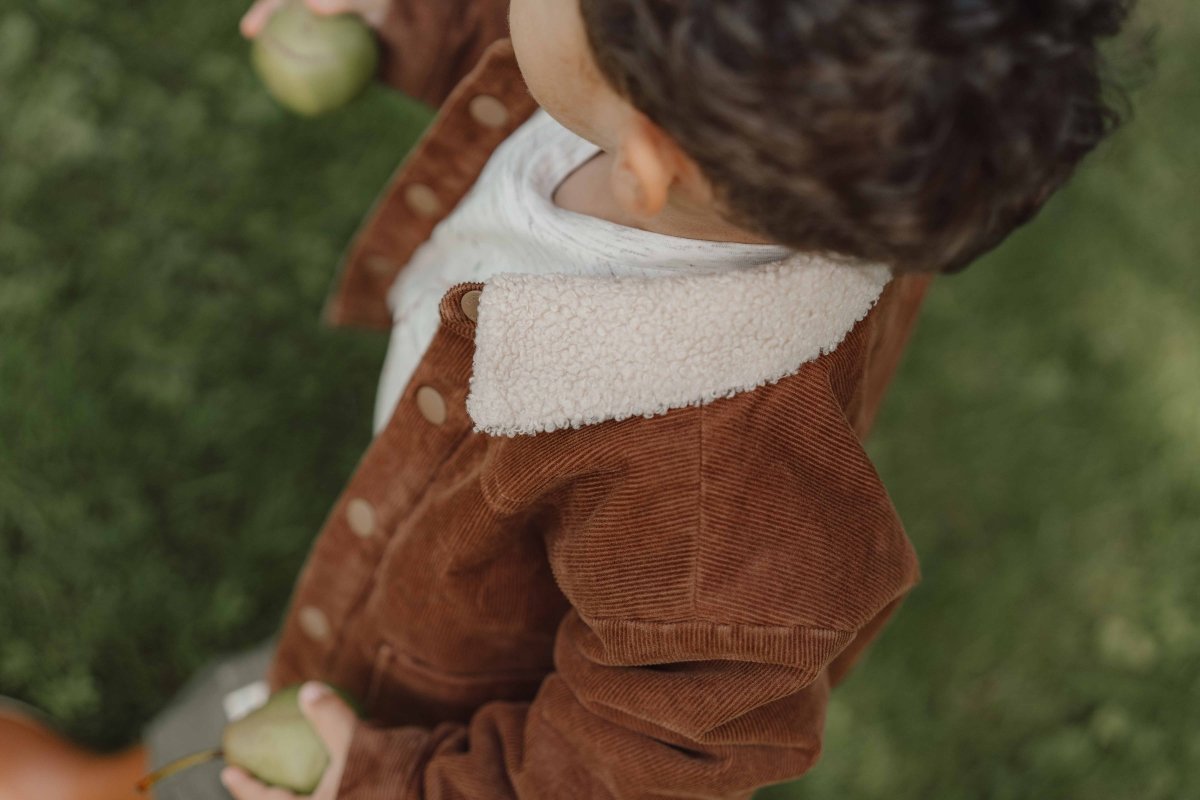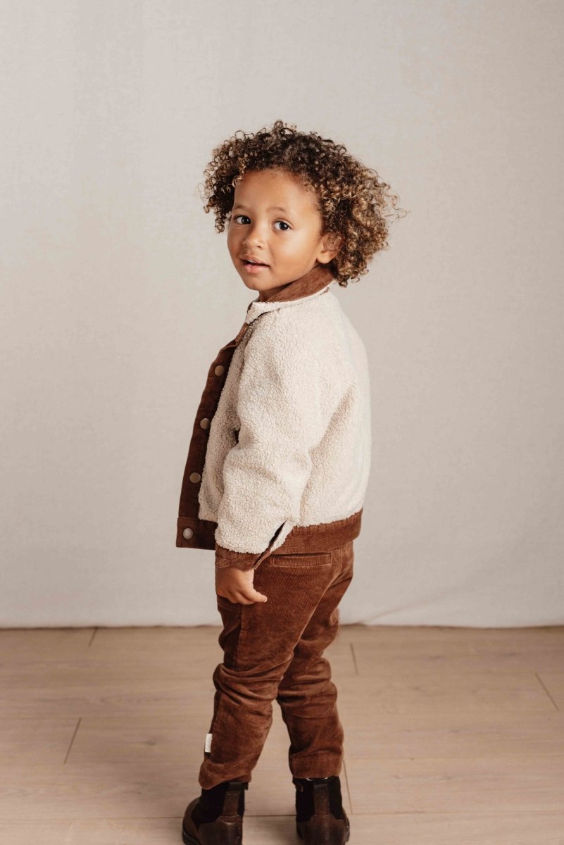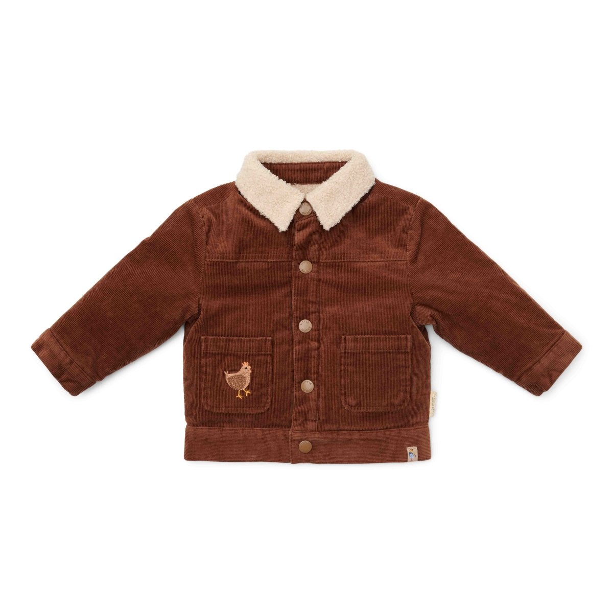 Wendbar: Rippstoff und Teddy in einem! Bleib warm und stylish mit dieser bequemen und vielseitigen Wendejacke. Die Jacke ist für kuschelige Wärme konzipiert und hat auf der einen Seite weichen, warmen Cord und auf der anderen Seite plüschigen Teddystoff, sodass du zwei coole Looks in einem hast. Die Jacke hat Seitentaschen mit einem aufgestickten Hahn und lässt sich dank des praktischen Druckknopfverschlusses leicht an- und ausziehen. Kombiniere sie mit anderen Teilen aus der Farm-Kollektion für einen kompletten Look. Erhältlich in den Größen 74, 80, 86, 92, 98 und 104.