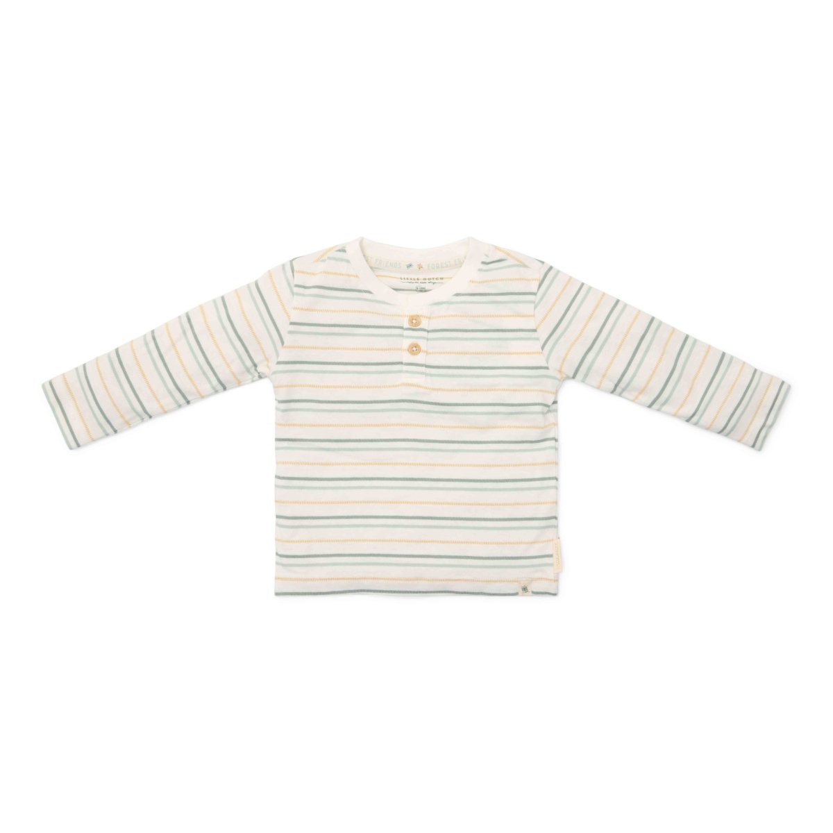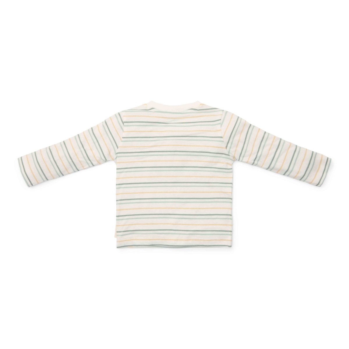 Stell dir vor, du entdeckst bei jedem Schritt in der Natur etwas Neues. Dieses langärmelige, vom Wald inspirierte T-Shirt wird dich dorthin bringen. Die weiche, wollweiße Bio-Baumwolle ist mit Streifen in Erdtönen verziert, die an die schönen Wälder erinnern, die darauf warten, entdeckt zu werden. Der Knopfverschluss in Holzoptik verleiht einen Hauch von rustikalem Charme.