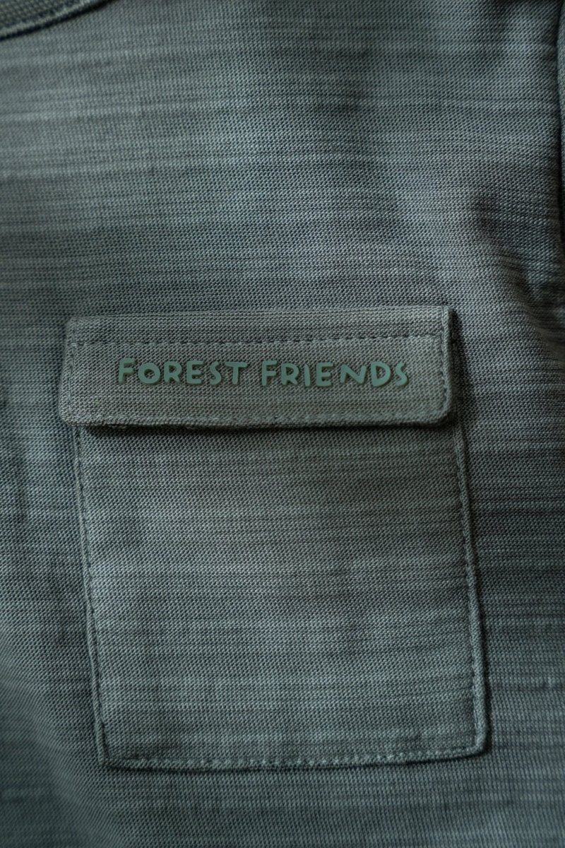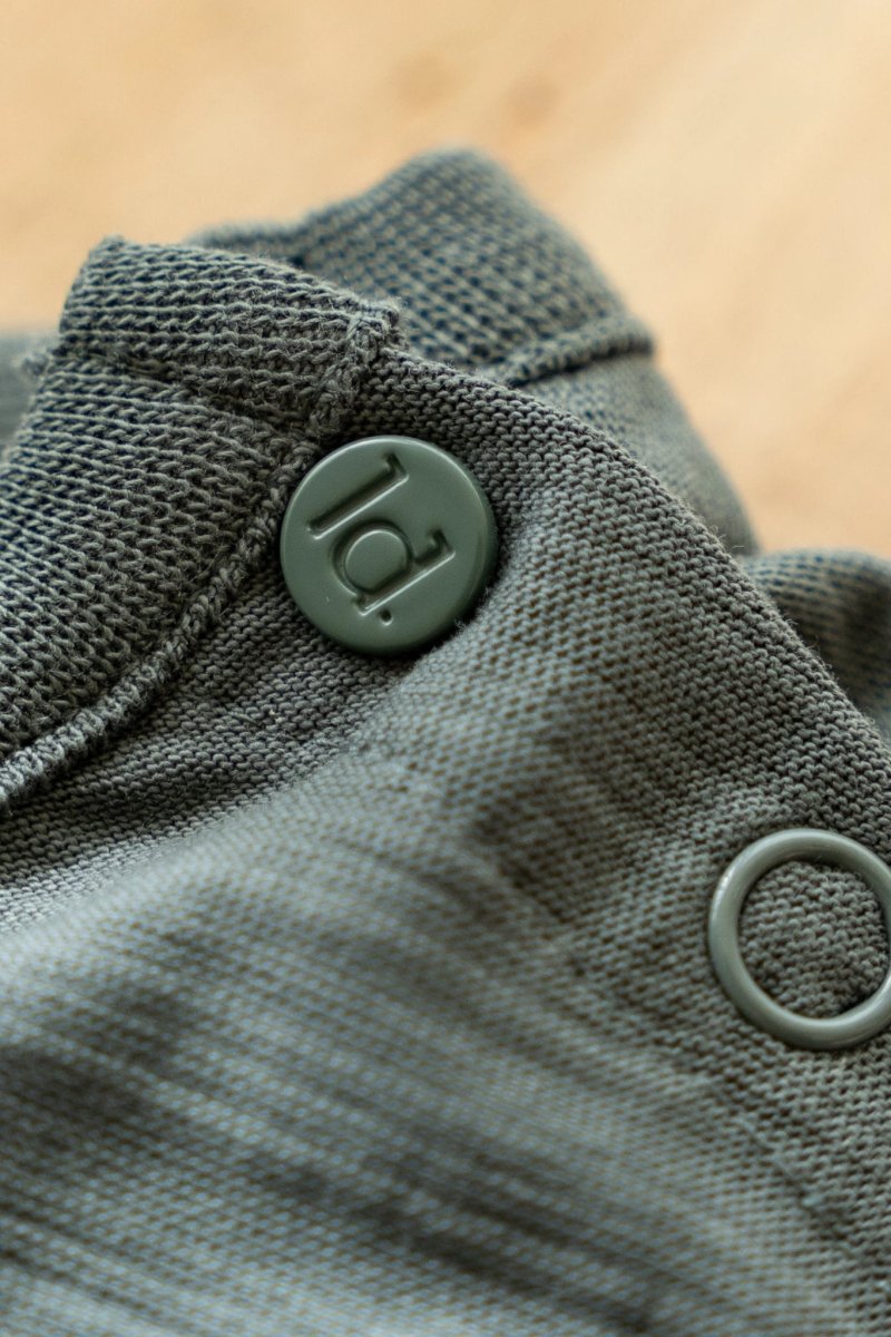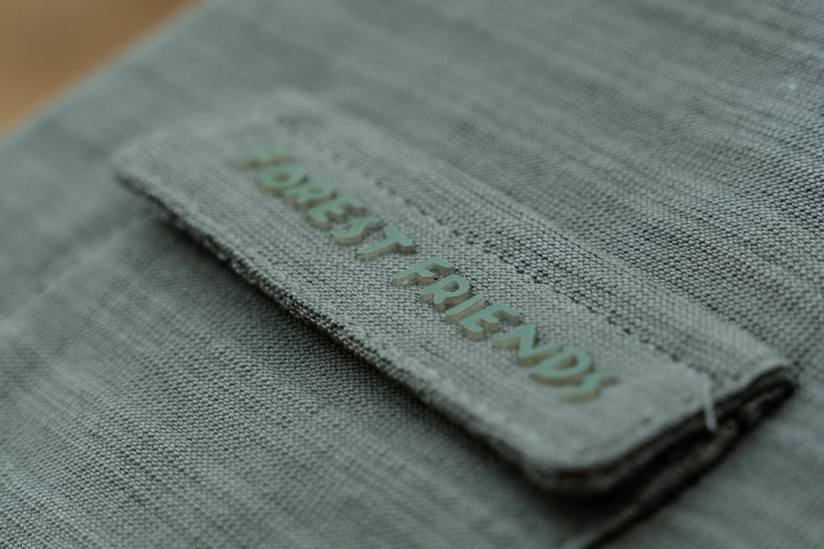 Strukturierter Stoff, Brusttasche, Stickerei auf der Taschenklappe, aus Bio-Baumwolle, Öko-Tex zertifiziert. 100% Bio-Baumwolle