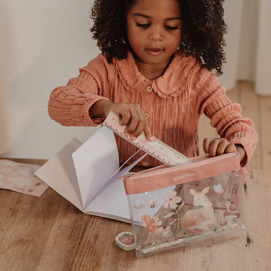 Dieses niedliche Little Dutch Fairy Garden Schreibset ist perfekt für kleine Künstler und Schreiber. Dieses Set enthält alles, was du brauchst, um kreativ zu sein. Ein mit Feen und bunten Blumen verziertes Notizbuch, ein zauberhaftes Stickerblatt, um Kreationen zu verschönern, ein stabiles Lineal für exakte Linien, ein weicher Radiergummi, um Fehler wegzuwischen, ein Bleistiftspitzer, um die Bleistifte scharf zu halten, ein Bleistift zum Schreiben und Zeichnen und eine Schablone, um wunderschöne, von der Natur inspirierte Designs zu kreieren. Ob zu Hause, in der Schule oder unterwegs, dieses Set wird die Fantasie jedes Kindes anregen, wenn es in den Zauber des Feengartens eintaucht.