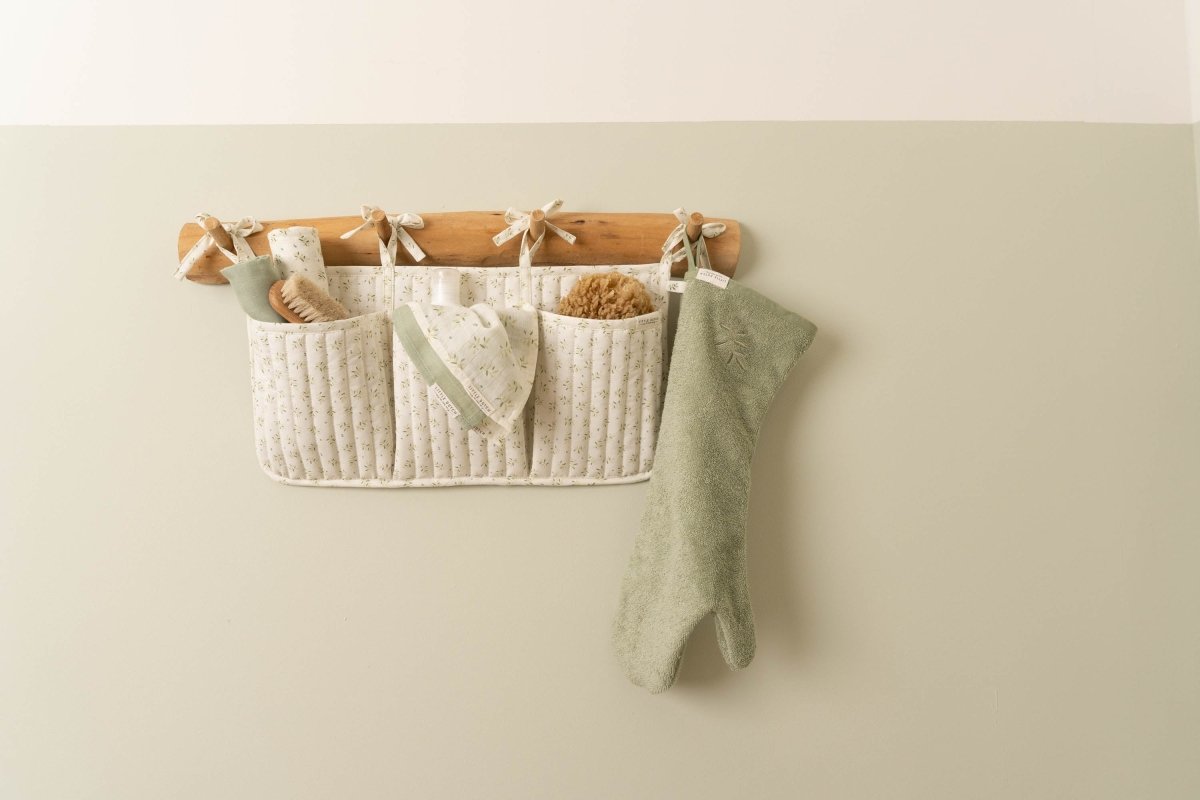 Mit diesem praktischen Organizer hast du alle wichtigen Utensilien deines Babys immer griffbereit. Er besteht aus gesteppter 100%iger Baumwolle und hat drei geräumige Fächer. Darin kannst du Schnuller, Tücher, Lätzchen, Windeln, Tücher, Spielzeug und mehr verstauen - alles, was du für dein Kleines brauchst. Mit den Kordeln kannst du sie ganz einfach am Laufstall, an der Kommode oder an der Wand befestigen. Das niedliche Blueberry Leaves Design bringt einen Hauch von Natur ins Haus und inspiriert zu Abenteuern in Wald und Garten.