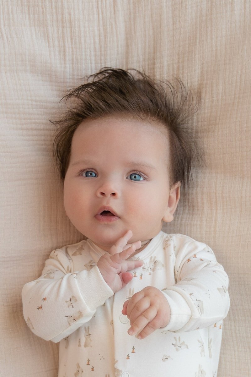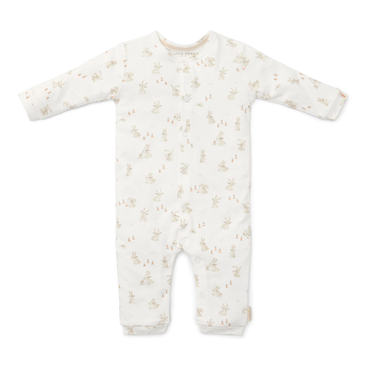 Für Neugeborene ist dieser Boxsuit aus wunderbar weicher Bio-Baumwolle ideal. Du musst ihn nicht über den Kopf deines Babys ziehen. Du kannst dein Kind einfach in den Anzug stecken und ihn mit den Druckknöpfen anziehen. Der cremefarbene Spielanzug hat süße kleine Konijntjes. Der Anzug wird mit kleinen Etiketten mit dem Little Dutch Logo und dem Karottensymbol geliefert. Erhältlich in den Größen 44, 50, 56, 62, 68 und 74.