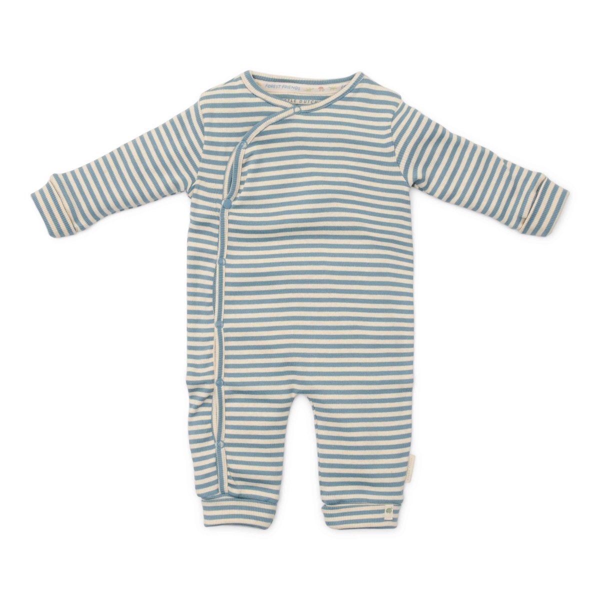 Genieße alle ersten Momente mit Stil! Dieser stylische Strampelanzug umhüllt dein Kind von Kopf bis Fuß mit Komfort. Der Stoff hat eine charmante Streifenstruktur und eine hübsche blaue Farbe. Das Wickeldesign macht das An- und Ausziehen deines Kindes ganz einfach. Er besteht aus weicher Bio-Baumwolle und bietet deinem Kind einen angenehmen Tragekomfort. Kombiniere ihn mit anderen Artikeln aus der koordinierten Forest Friends Kollektion. Erhältlich in den Größen 44, 50, 56, 62, 68 und 74, für die perfekte Passform von Anfang an.
