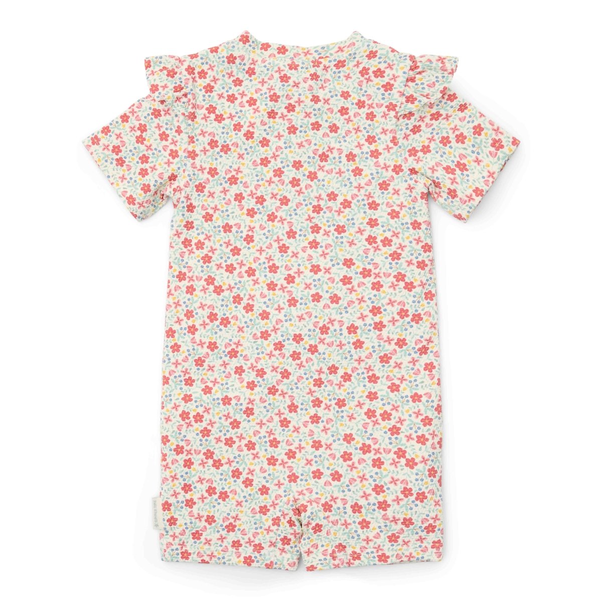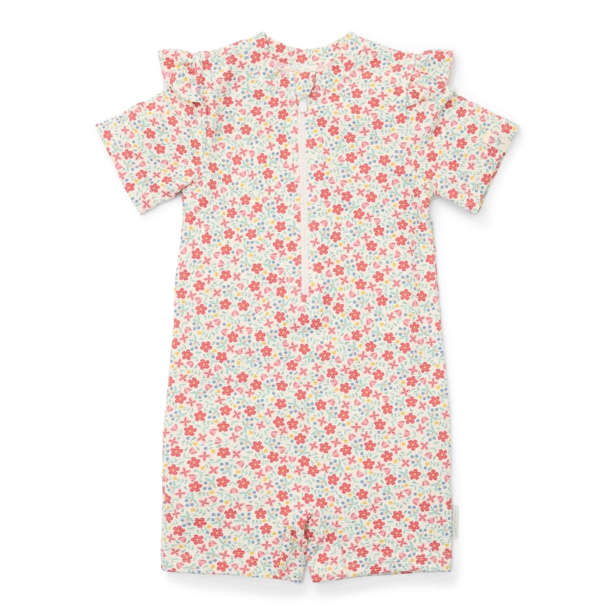 Dieser Badeanzug gibt deinem Kleinen den Schutz, den es für einen lustigen und unbeschwerten Tag voller Wasseraktivitäten braucht. Das Sunny Flowers Design zeigt einen zarten Druck aus winzigen rosa Blumen, die mit Zweigen voller grüner Blätter verwoben sind. Der Reißverschluss auf der Vorderseite erleichtert das An- und Ausziehen, egal ob dein Kind nass oder sandig ist. Die Rüschen an den Schultern sind von der Bewegung der Wellen inspiriert und verleihen dem Badeanzug einen Hauch von Charme. Erhältlich in den Größen 62/68, 74/80, 86/92 und 98/104.